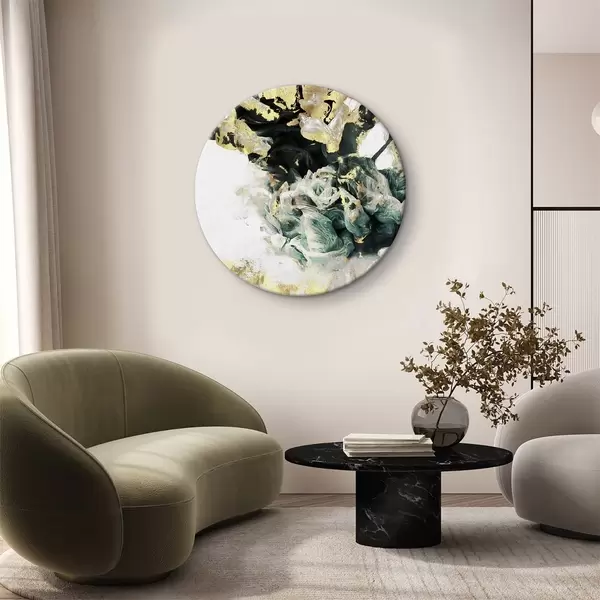 Runde Gemälde Grüner Rauch auf einer Grunge-Wand r02713