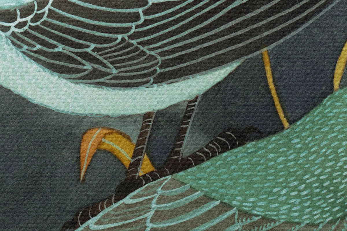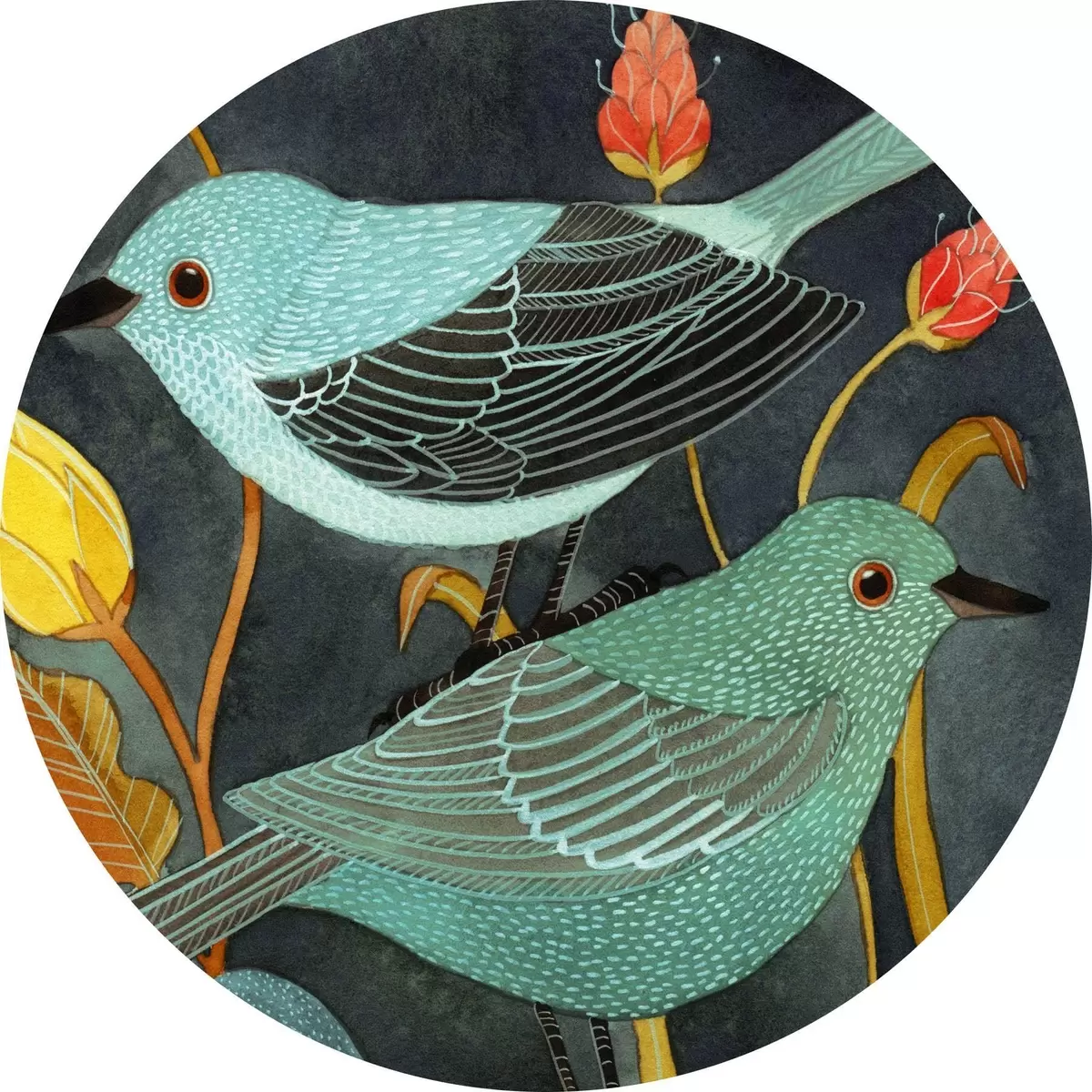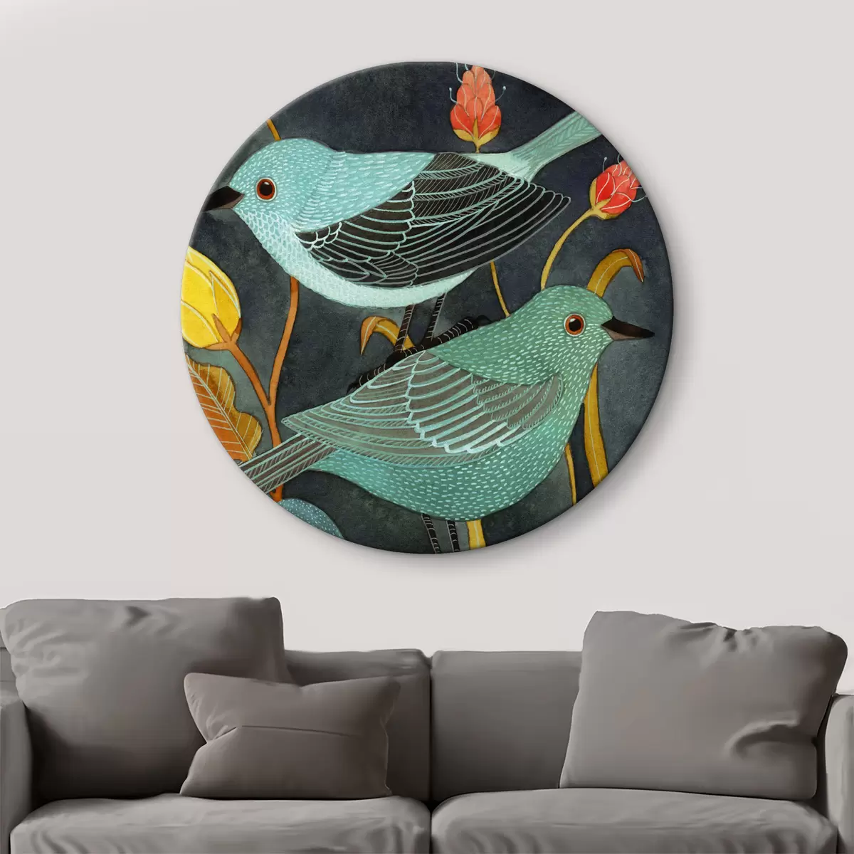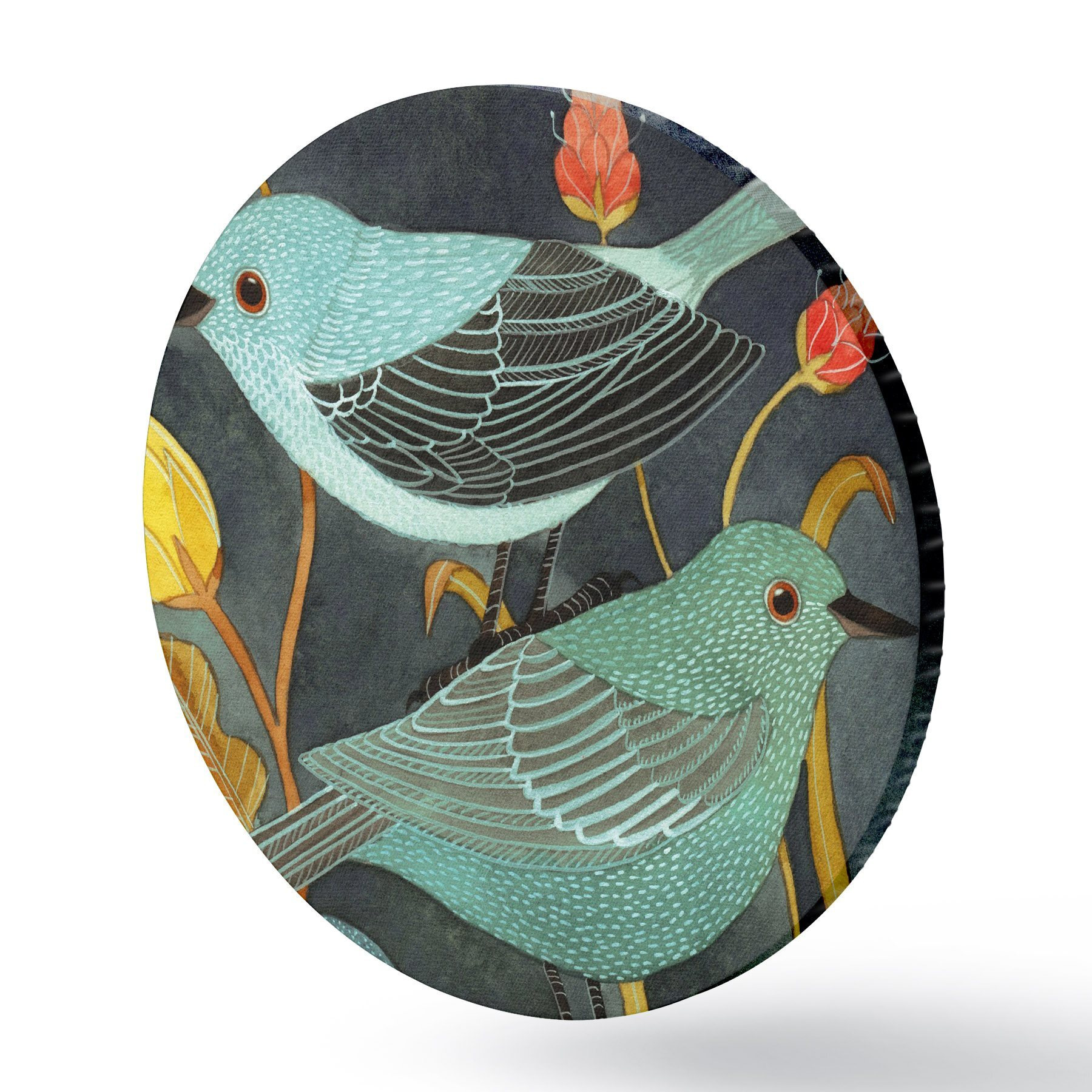 Runde Gemälde Drei Vögel schauen sich um r03061