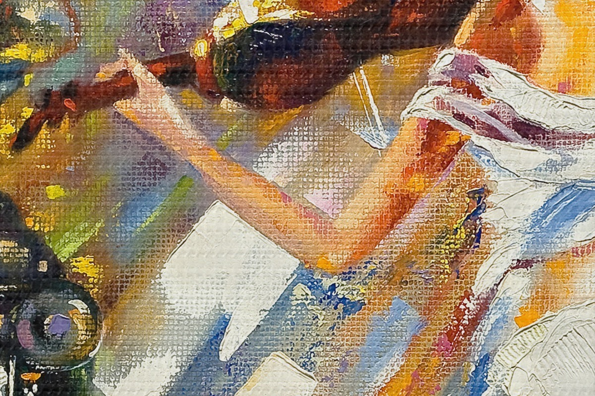 Drei Materialtypen stehen zur Verfügung: Economic Canvas - ein dichtes und haltbares Material für den Digitaldruck, identisch mit Malerleinwand, wasserfeste Oberfläche, realistische Wiedergabe von Details, mittelkörniges Material. Premium Canvas - die Textur ähnelt der einer Malerleinwand (verwobene kleine Fäden). Weiche, detaillierte Wiedergabe des Bildes auf einer matten Oberfläche. Eco-Premium - hochwertiges Gewebe aus 100% Baumwolle. Dank der natürlichen Baumwollfasern ist das Material langlebig und verschleißfest. Hervorragende Farbwiedergabe und Detailtreue.