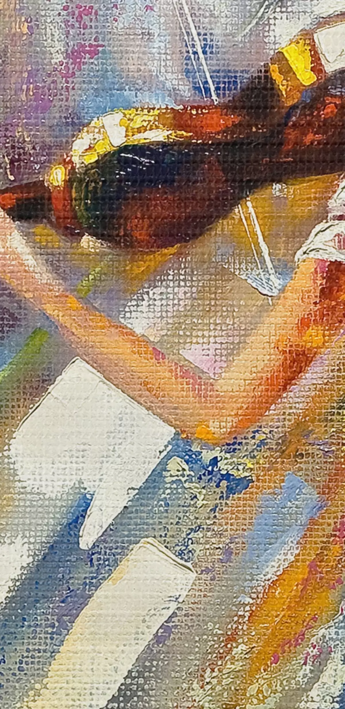 Das feine Fadengeflecht auf dieser Leinwand ähnelt der Oberfläche von professionellen Künstlerleinwänden.