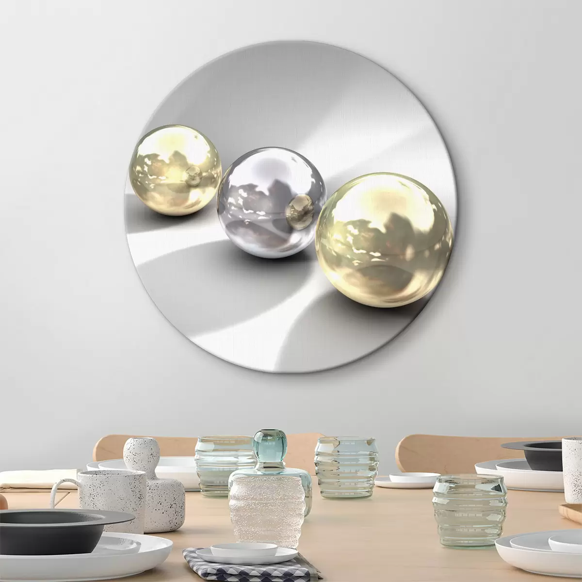Runde Gemälde Naturmaterial, Bernstein und Silber r04617