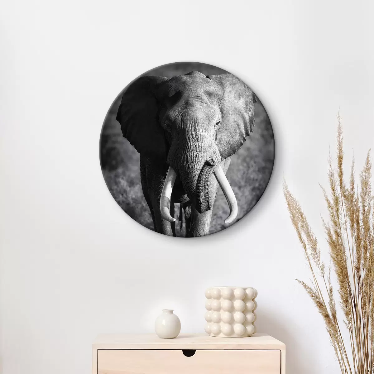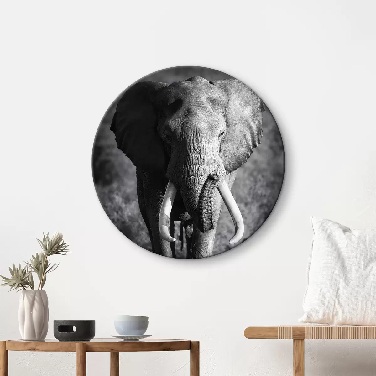 Runde Gemälde Pflanze, Elefant und Auge r08133