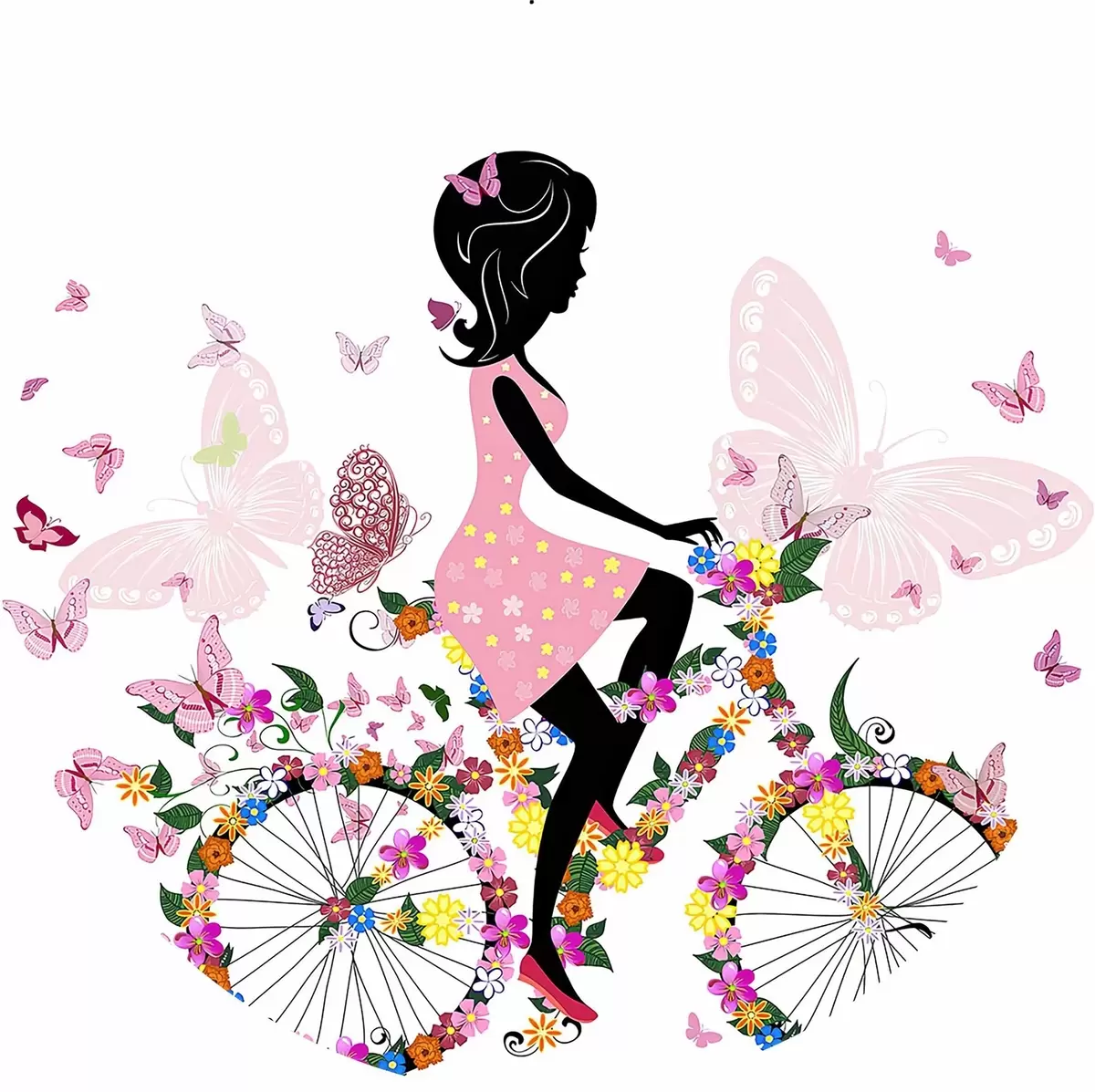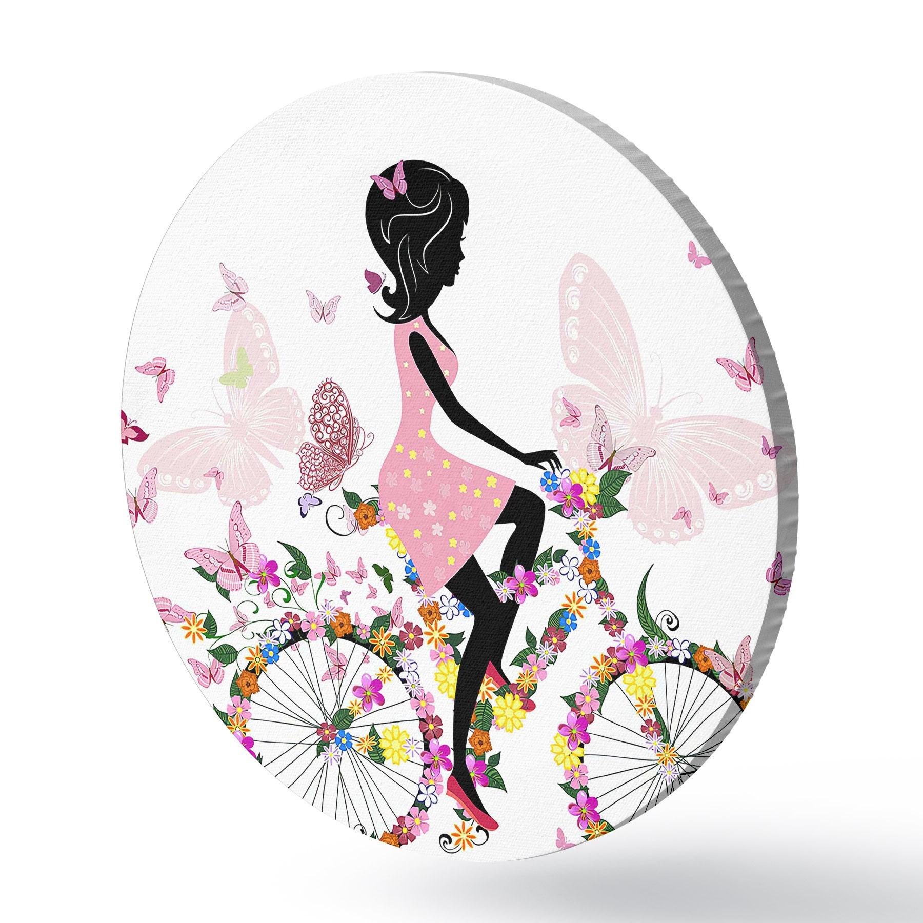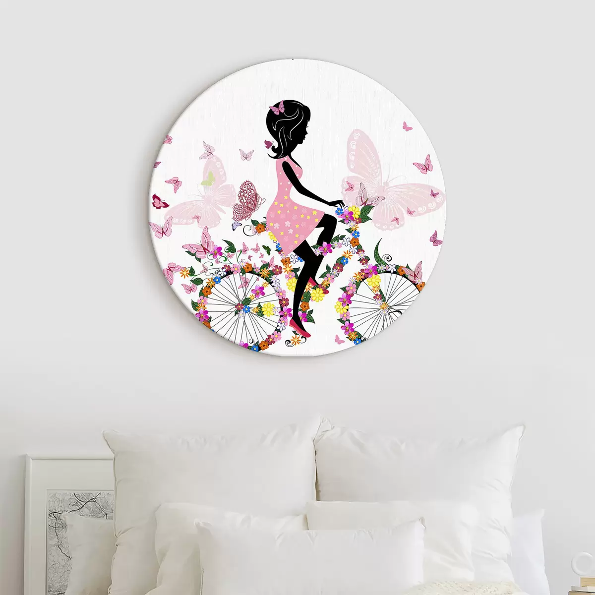 Runde Gemälde Fahrrad, Mensch in der Natur und Blume r08603