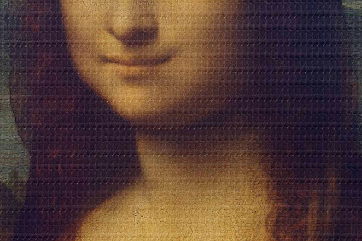 Um die Leinwand auf Keilrahmen zu spannen, ohne das Bild zu beschädigen, verwenden wir ein gespiegeltes Bild.