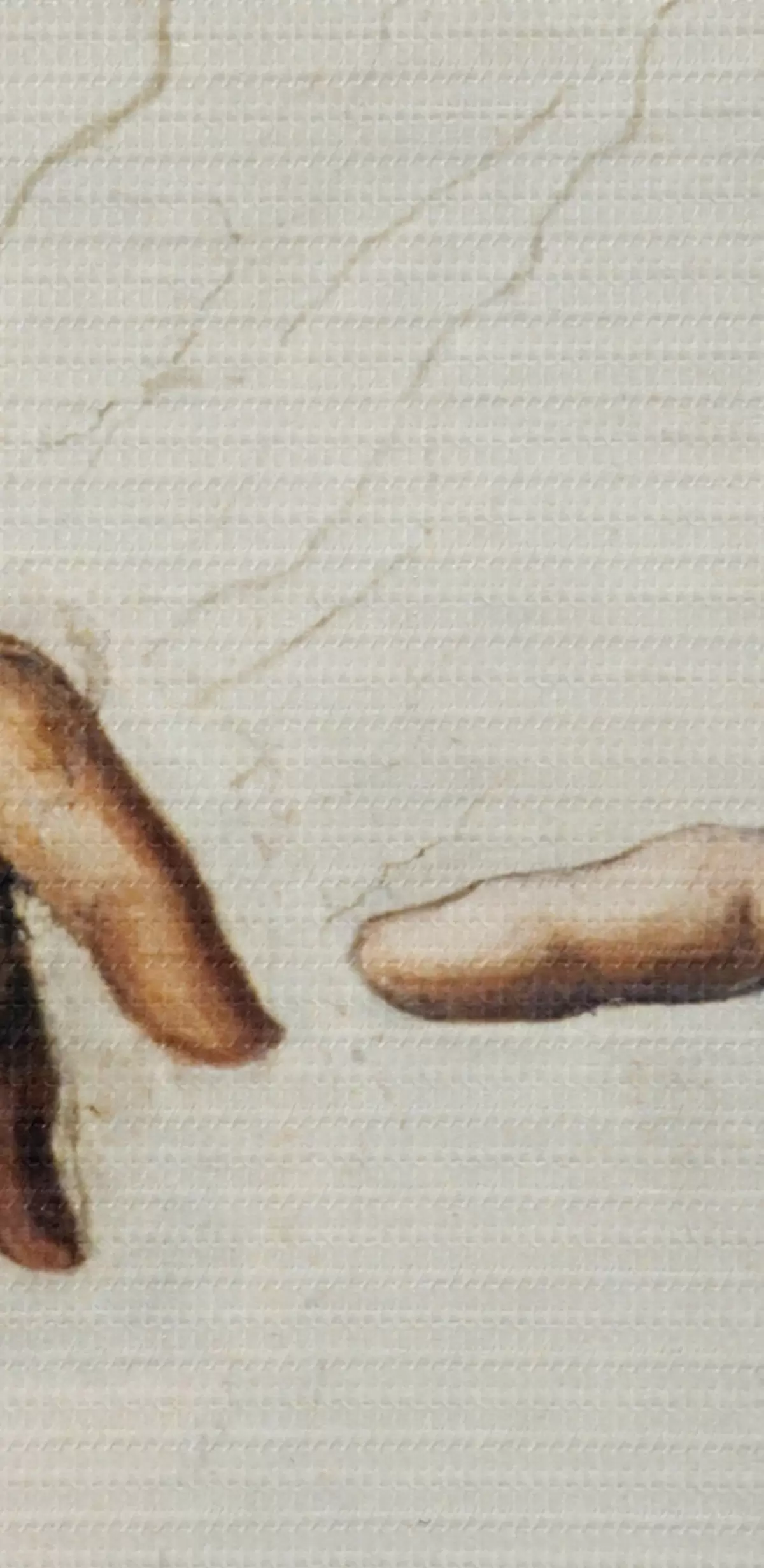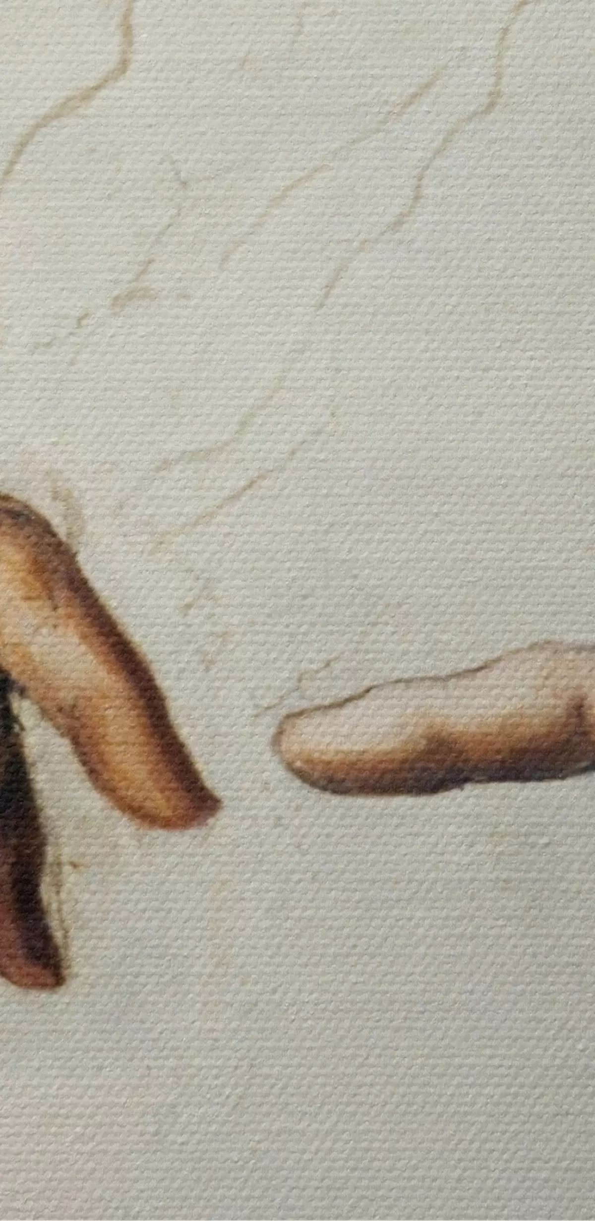 Um die Leinwand auf Keilrahmen zu spannen, ohne das Bild zu beschädigen, verwenden wir ein gespiegeltes Bild.