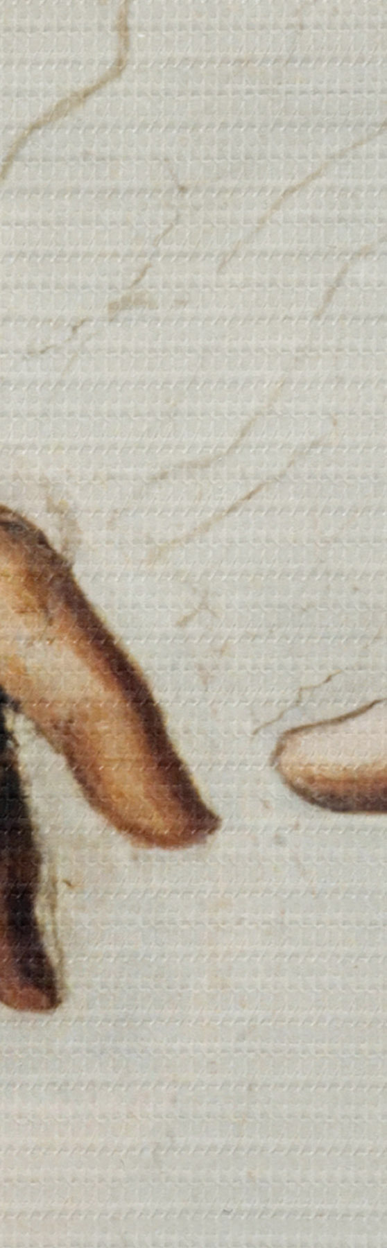 Das Bild kann vorsichtig mit einem trockenen, weichen Tuch oder Schwamm abgewischt werden; es wird nicht empfohlen, feuchte Produkte zu verwenden. Die Verwendung eines feuchten Schwamms ist nur zulässig, wenn das Bild lackiert wurde.