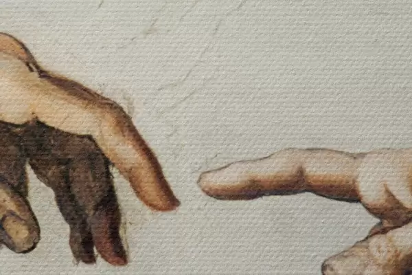 Um die Leinwand auf Keilrahmen zu spannen, ohne das Bild zu beschädigen, verwenden wir ein gespiegeltes Bild.