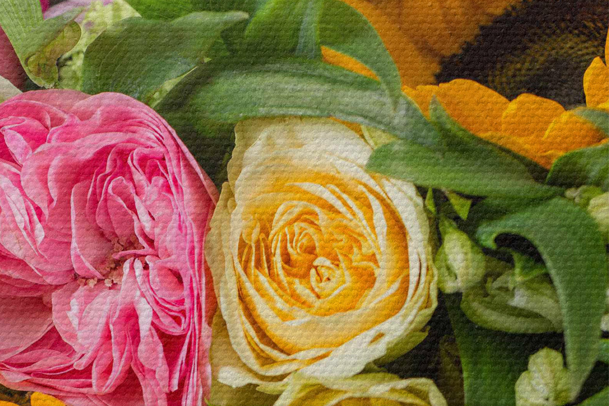 Drei Materialtypen stehen zur Verfügung: Economic Canvas - ein dichtes und haltbares Material für den Digitaldruck, identisch mit Malerleinwand, wasserfeste Oberfläche, realistische Wiedergabe von Details, mittelkörniges Material. Premium Canvas - die Textur ähnelt der einer Malerleinwand (verwobene kleine Fäden). Weiche, detaillierte Wiedergabe des Bildes auf einer matten Oberfläche. Eco-Premium - hochwertiges Gewebe aus 100% Baumwolle. Dank der natürlichen Baumwollfasern ist das Material langlebig und verschleißfest. Hervorragende Farbwiedergabe und Detailtreue.