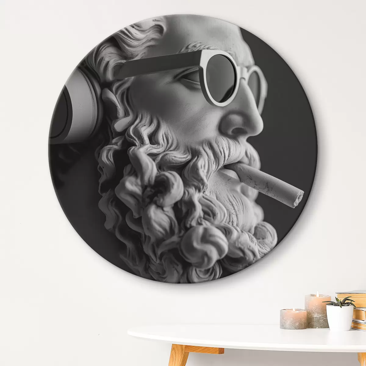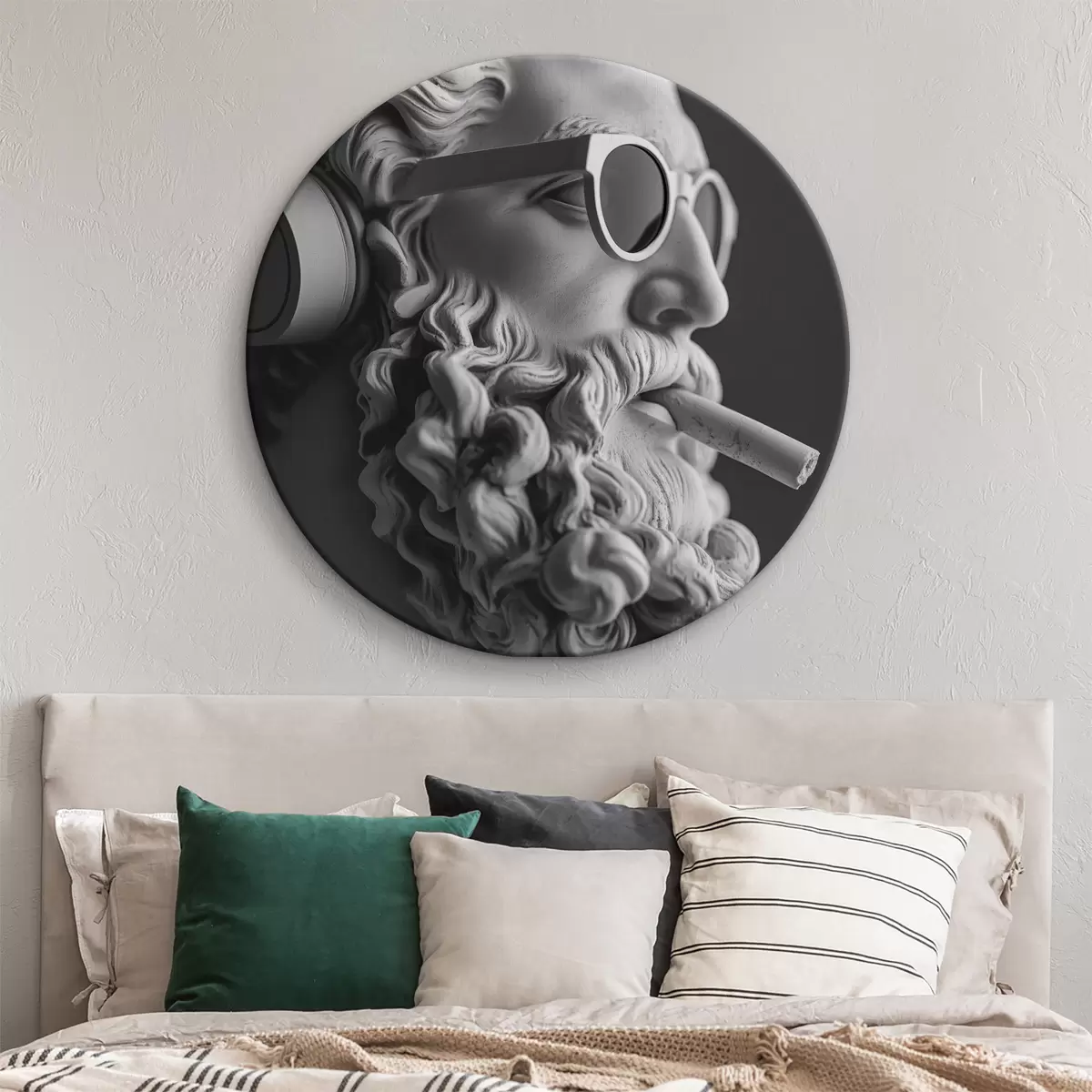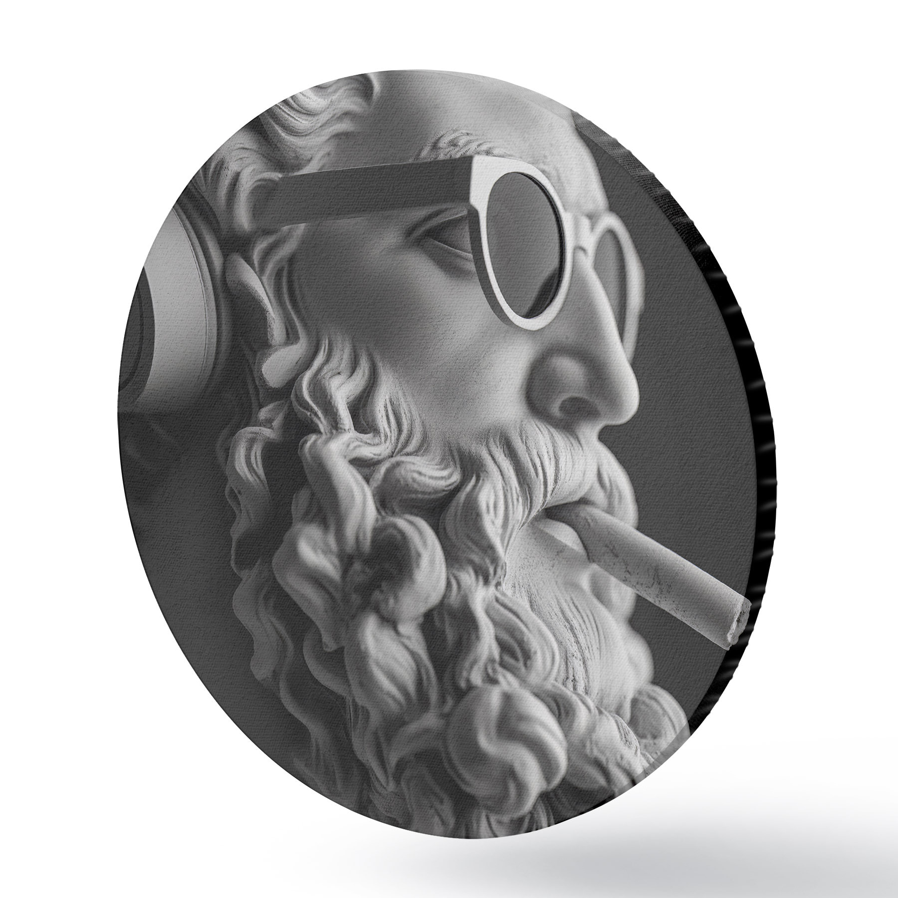 Runde Gemälde Schwarz-weiße antike griechische Skulptur des Zeus im modernen Stil r26122