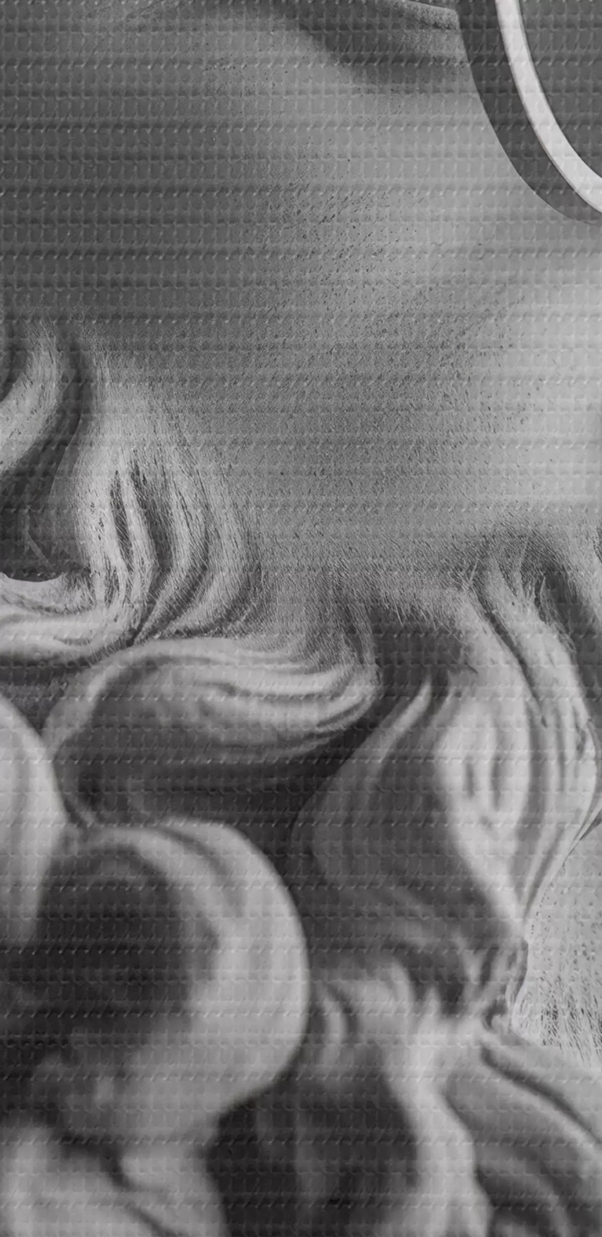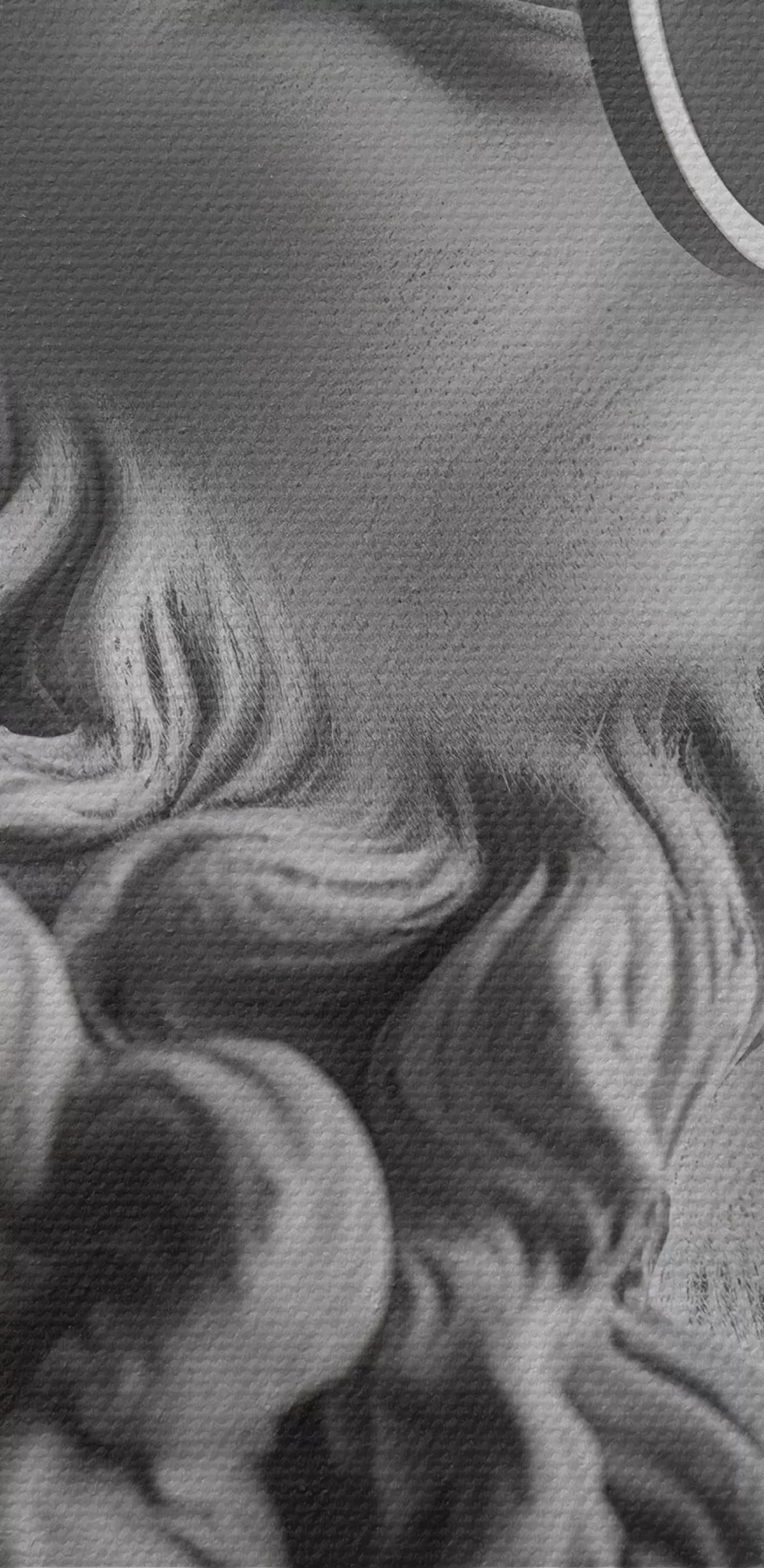 Um die Leinwand auf Keilrahmen zu spannen, ohne das Bild zu beschädigen, verwenden wir ein gespiegeltes Bild.