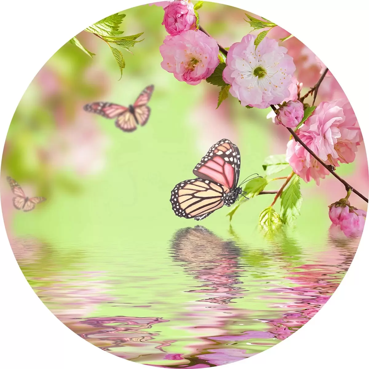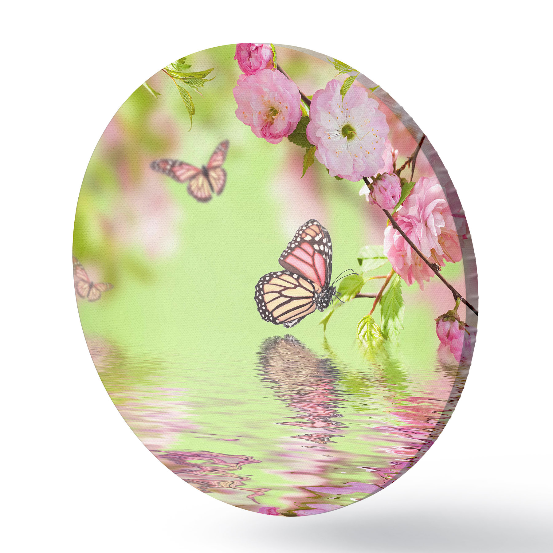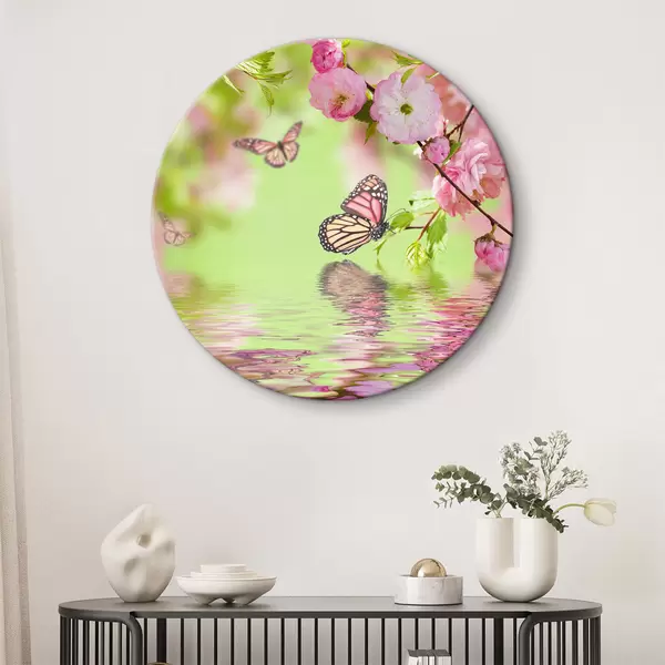 Runde Gemälde Bestäuber, Blumen und Schmetterlinge r27029