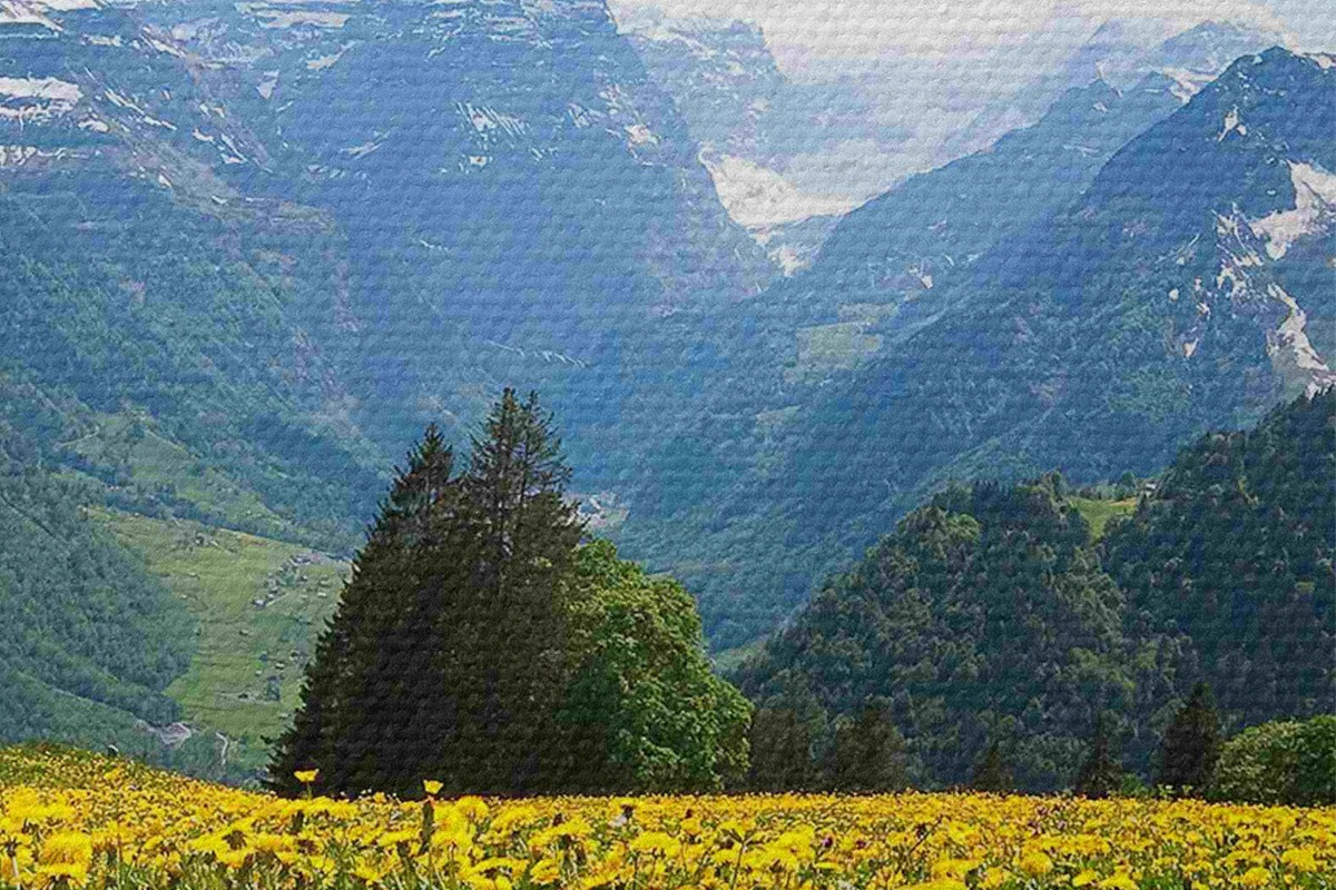 Drei Materialtypen stehen zur Verfügung: Economic Canvas - ein dichtes und haltbares Material für den Digitaldruck, identisch mit Malerleinwand, wasserfeste Oberfläche, realistische Wiedergabe von Details, mittelkörniges Material. Premium Canvas - die Textur ähnelt der einer Malerleinwand (verwobene kleine Fäden). Weiche, detaillierte Wiedergabe des Bildes auf einer matten Oberfläche. Eco-Premium - hochwertiges Gewebe aus 100% Baumwolle. Dank der natürlichen Baumwollfasern ist das Material langlebig und verschleißfest. Hervorragende Farbwiedergabe und Detailtreue.