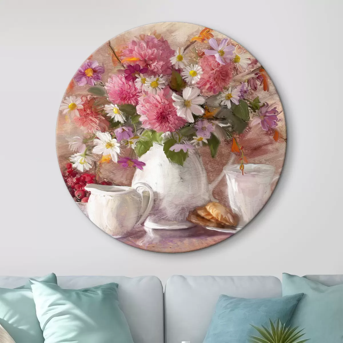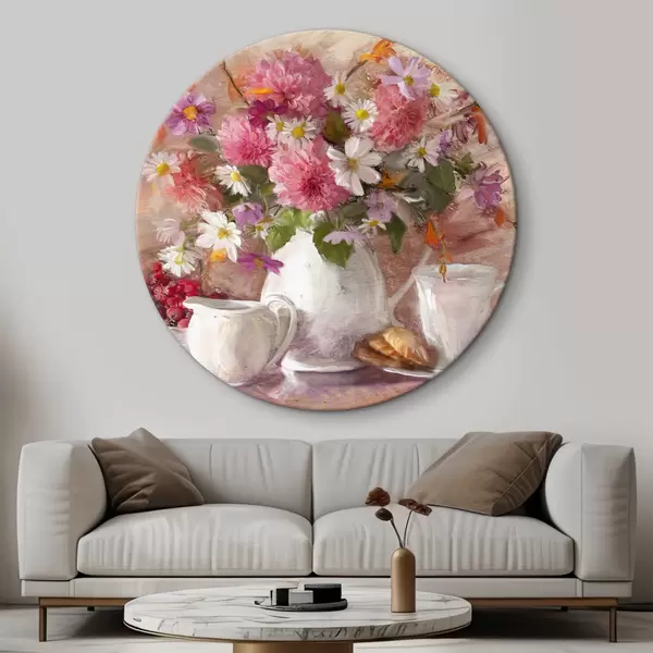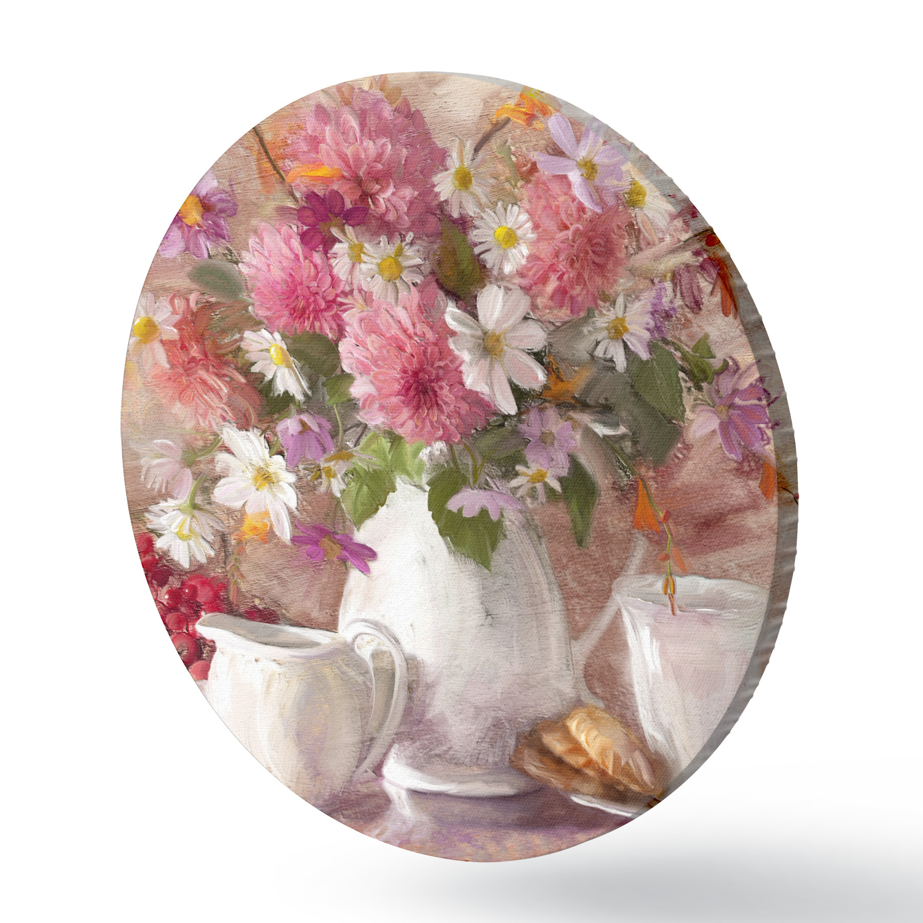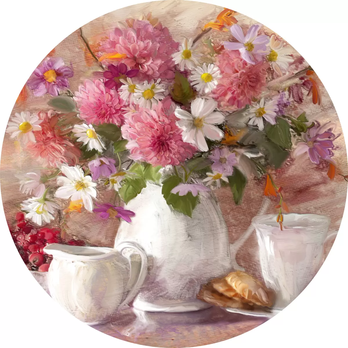Runde Gemälde Teeservice mit einem Strauß zartrosa Blumen r29240