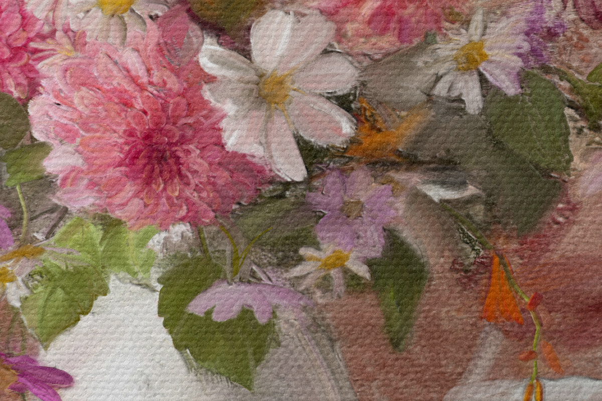 Das feine Fadengeflecht auf dieser Leinwand ähnelt der Oberfläche von professionellen Künstlerleinwänden.