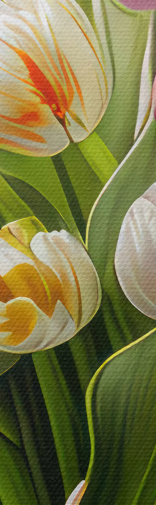 Drei Materialtypen stehen zur Verfügung: Economic Canvas - ein dichtes und haltbares Material für den Digitaldruck, identisch mit Malerleinwand, wasserfeste Oberfläche, realistische Wiedergabe von Details, mittelkörniges Material. Premium Canvas - die Textur ähnelt der einer Malerleinwand (verwobene kleine Fäden). Weiche, detaillierte Wiedergabe des Bildes auf einer matten Oberfläche. Eco-Premium - hochwertiges Gewebe aus 100% Baumwolle. Dank der natürlichen Baumwollfasern ist das Material langlebig und verschleißfest. Hervorragende Farbwiedergabe und Detailtreue.