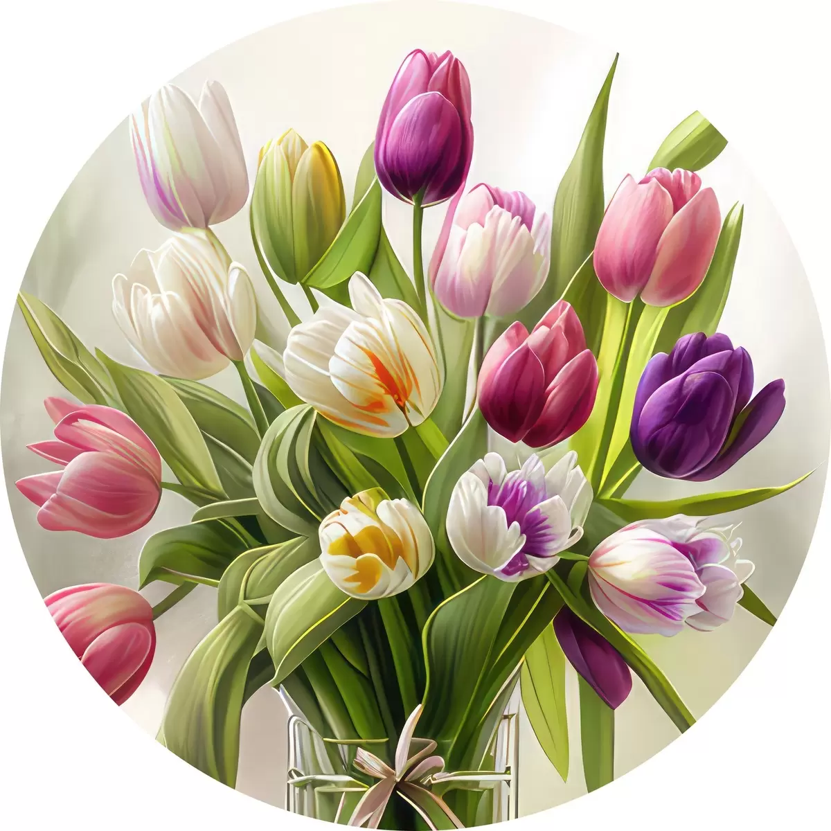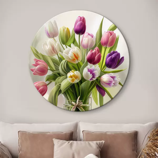 Runde Gemälde Blume, Pflanze und Blumentopf r31219