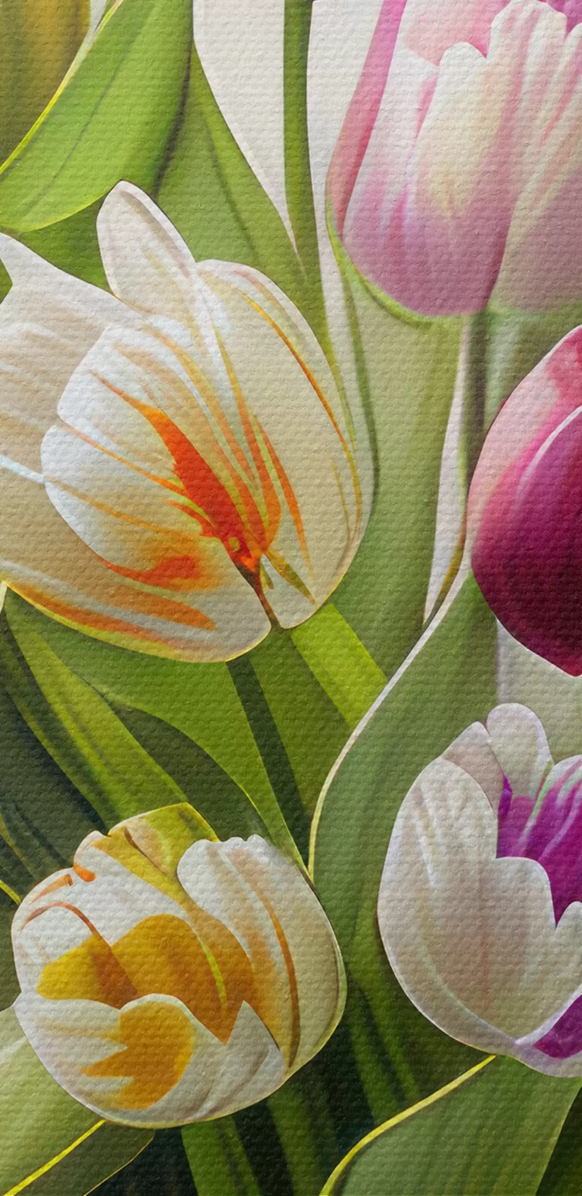 Drei Materialtypen stehen zur Verfügung: Economic Canvas - ein dichtes und haltbares Material für den Digitaldruck, identisch mit Malerleinwand, wasserfeste Oberfläche, realistische Wiedergabe von Details, mittelkörniges Material. Premium Canvas - die Textur ähnelt der einer Malerleinwand (verwobene kleine Fäden). Weiche, detaillierte Wiedergabe des Bildes auf einer matten Oberfläche. Eco-Premium - hochwertiges Gewebe aus 100% Baumwolle. Dank der natürlichen Baumwollfasern ist das Material langlebig und verschleißfest. Hervorragende Farbwiedergabe und Detailtreue.