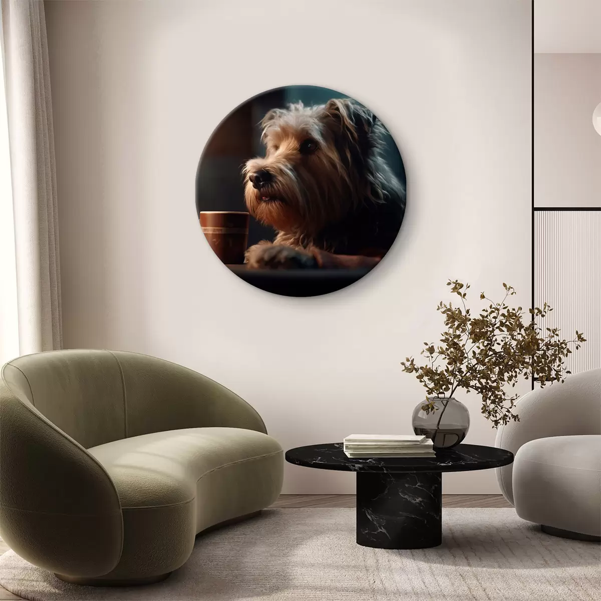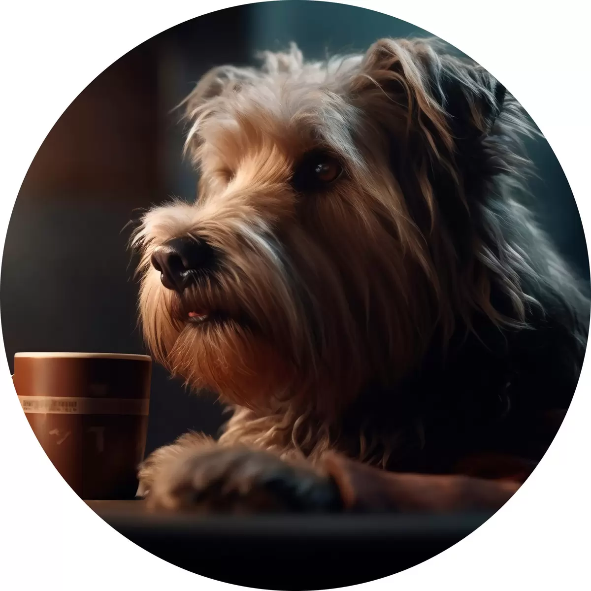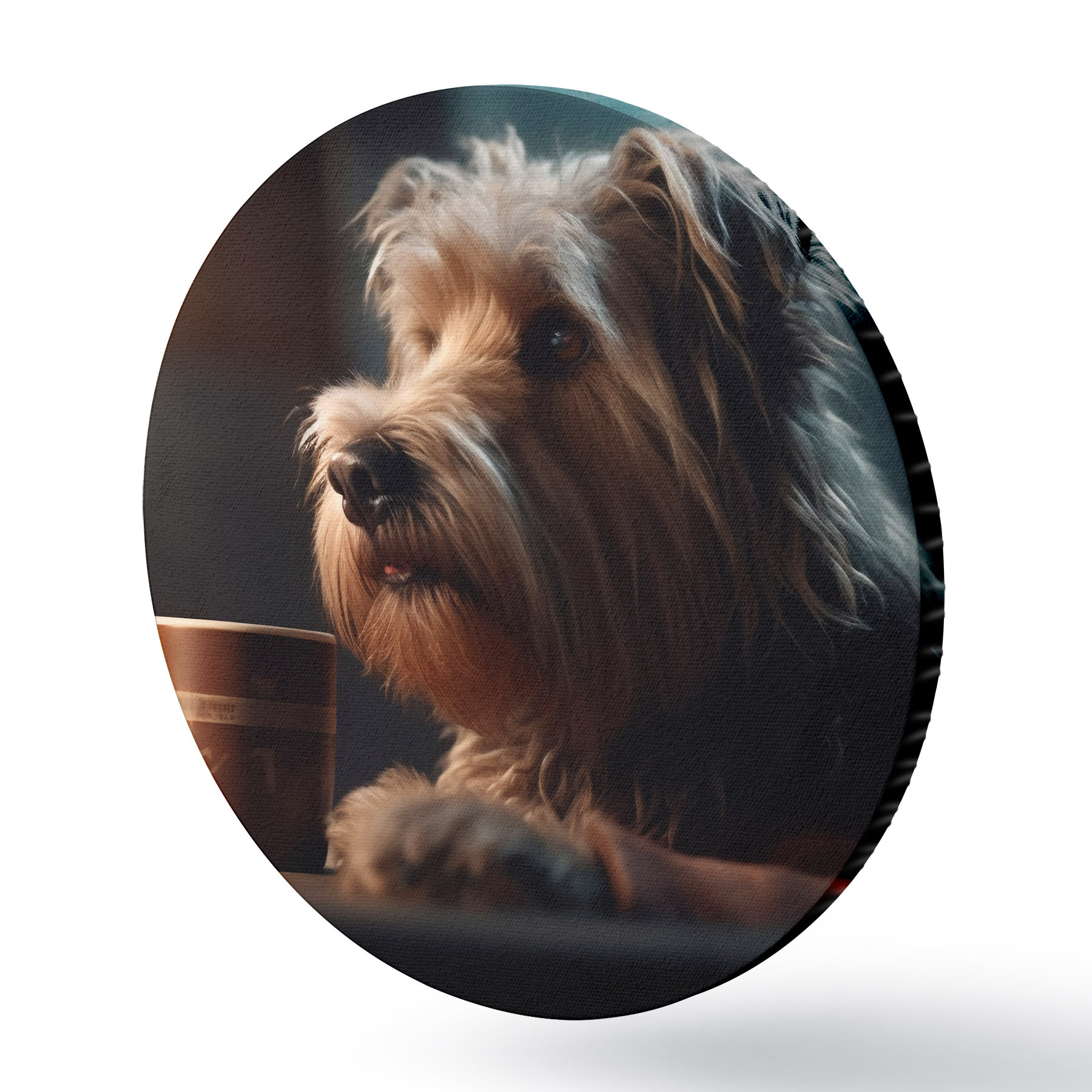 Runde Gemälde Eine Tasse Tee und ein Hund r32153