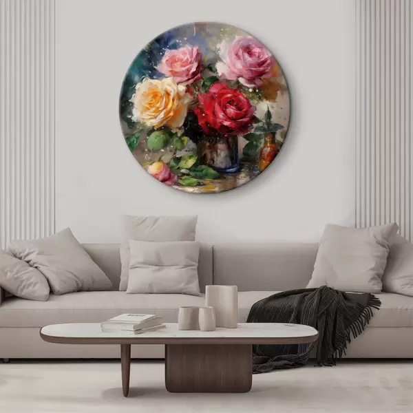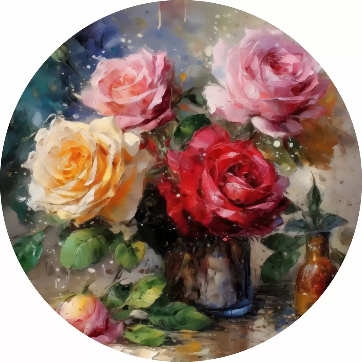 Runde Gemälde Blumenstrauß aus Rosen r32546
