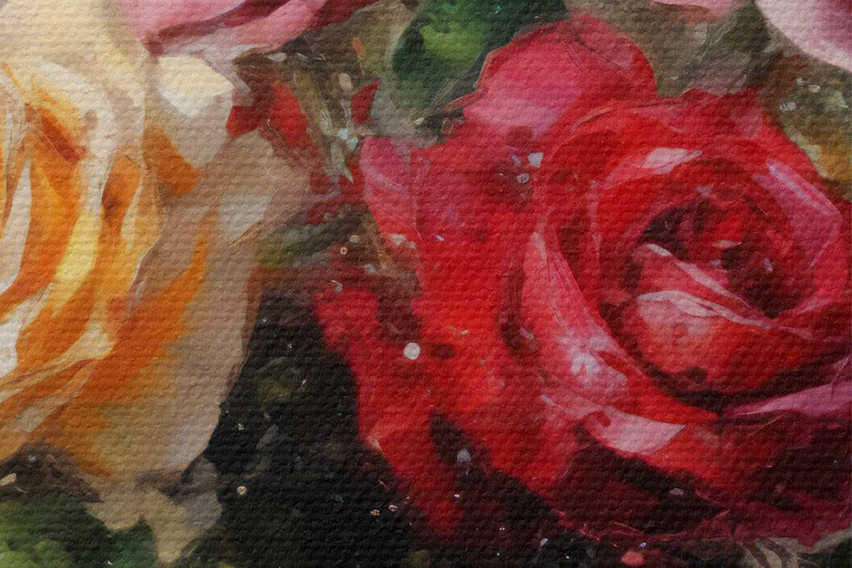 Drei Materialtypen stehen zur Verfügung: Economic Canvas - ein dichtes und haltbares Material für den Digitaldruck, identisch mit Malerleinwand, wasserfeste Oberfläche, realistische Wiedergabe von Details, mittelkörniges Material. Premium Canvas - die Textur ähnelt der einer Malerleinwand (verwobene kleine Fäden). Weiche, detaillierte Wiedergabe des Bildes auf einer matten Oberfläche. Eco-Premium - hochwertiges Gewebe aus 100% Baumwolle. Dank der natürlichen Baumwollfasern ist das Material langlebig und verschleißfest. Hervorragende Farbwiedergabe und Detailtreue.