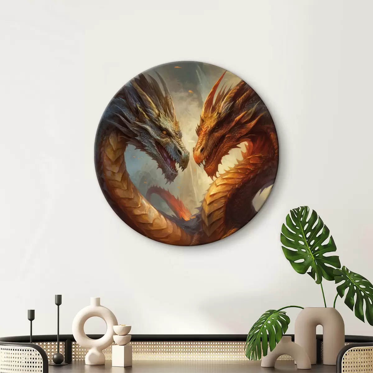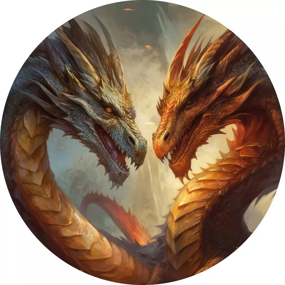 Runde Gemälde Zwei Drachen r32598