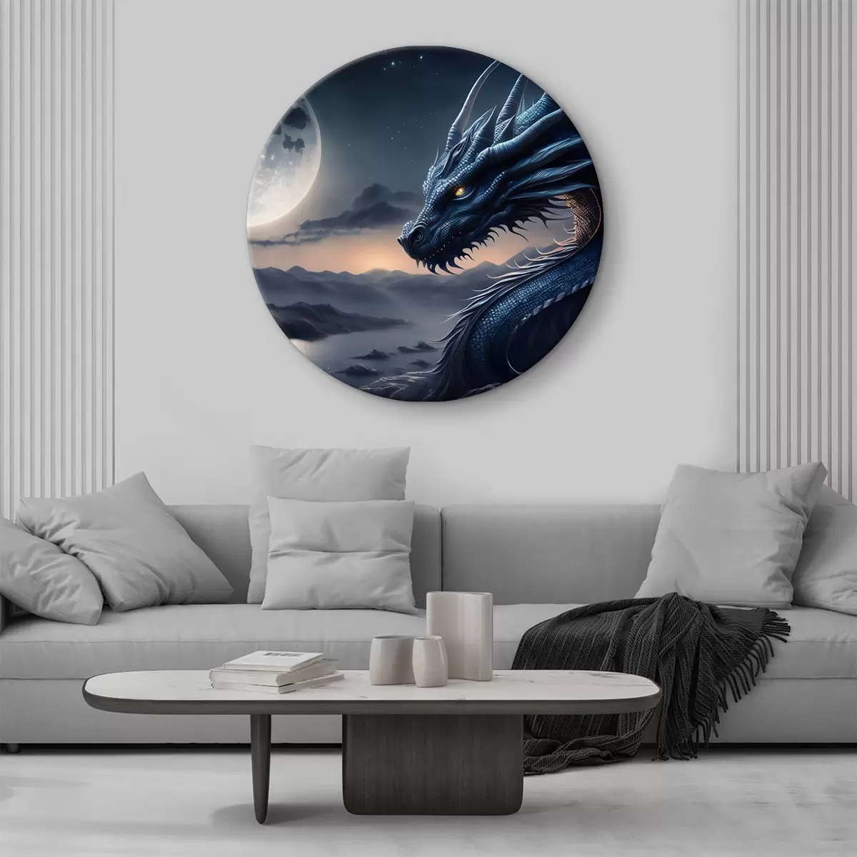 Runde Gemälde Licht, Mond und Kiefer r32612