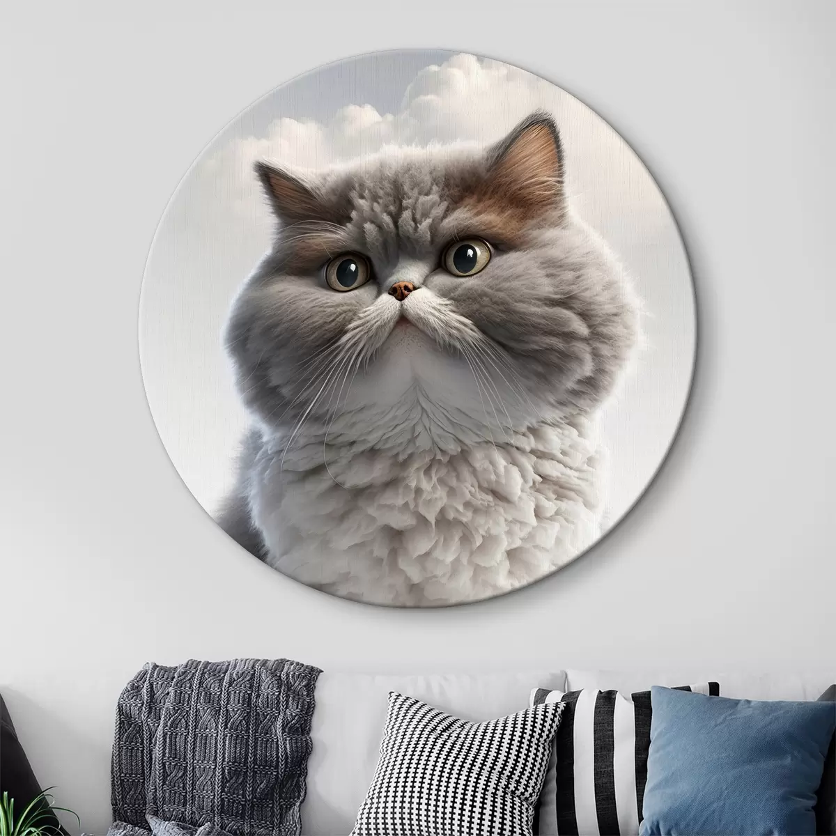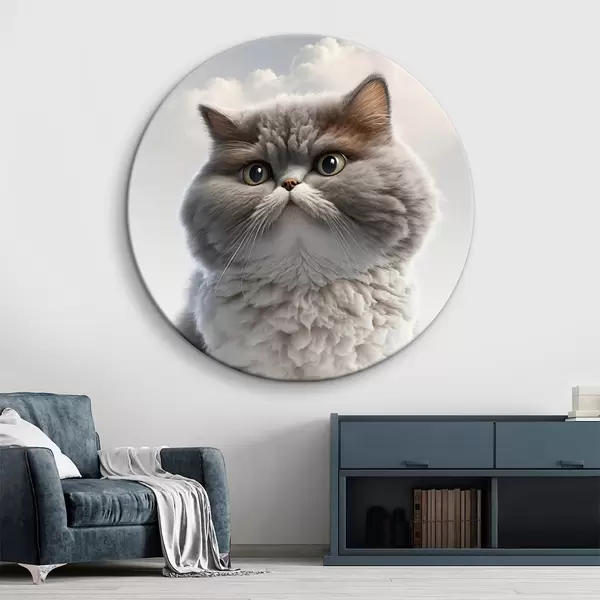Runde Gemälde Flauschige Katze r32796