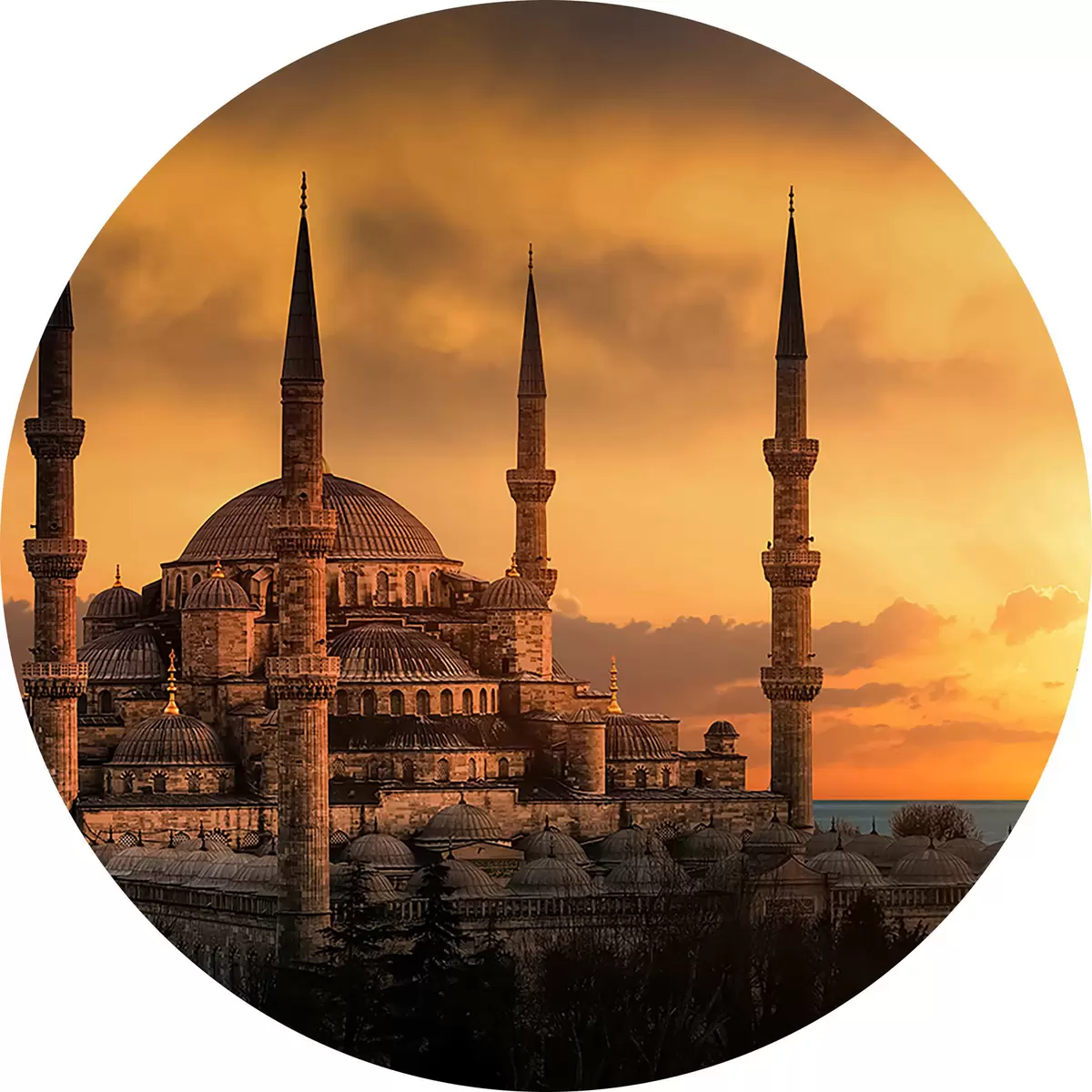 Runde Gemälde Blaue Moschee bei Sonnenuntergang, Istanbul r33029