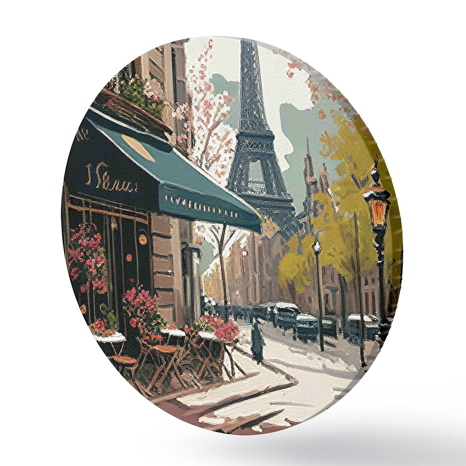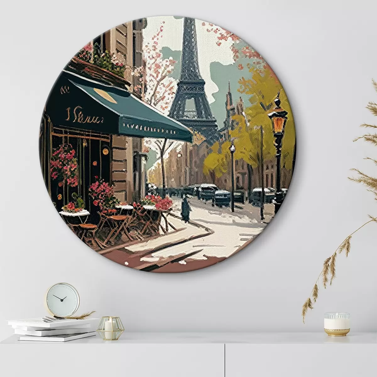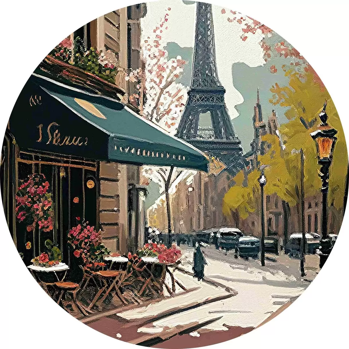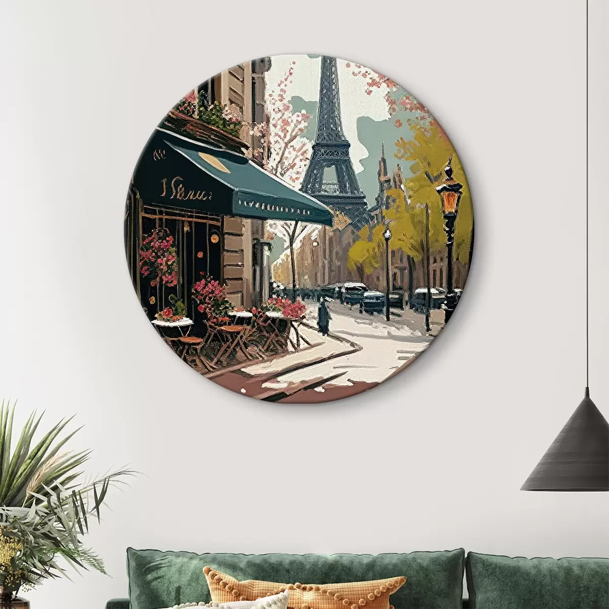 Runde Gemälde Cafe in Paris im handgezeichneten Stil r33523