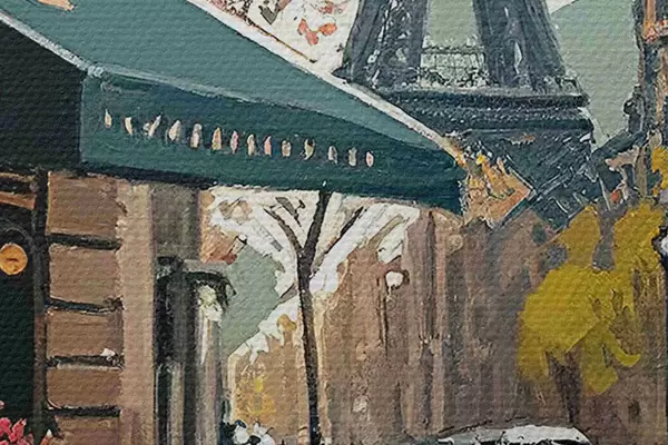 Um die Leinwand auf Keilrahmen zu spannen, ohne das Bild zu beschädigen, verwenden wir ein gespiegeltes Bild.