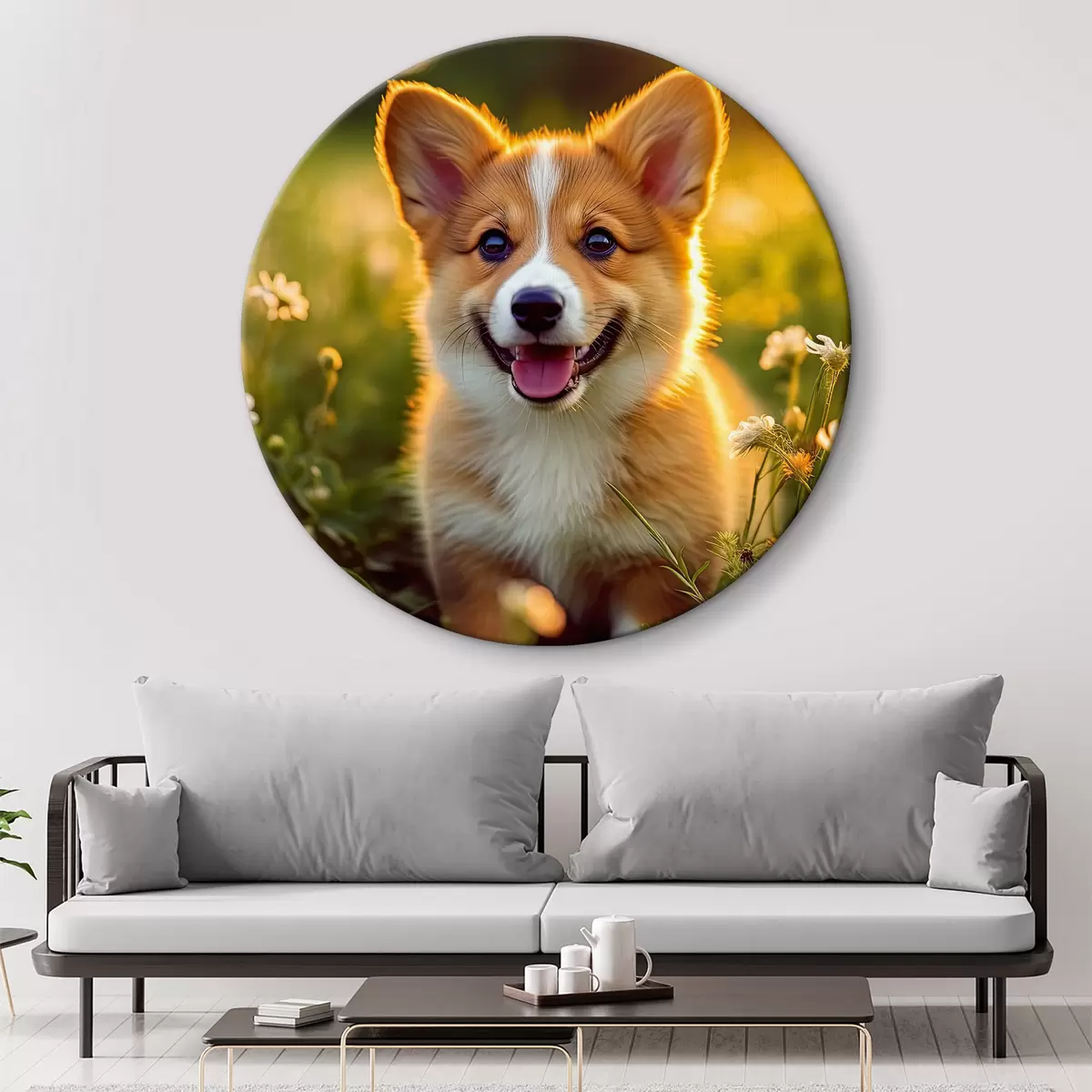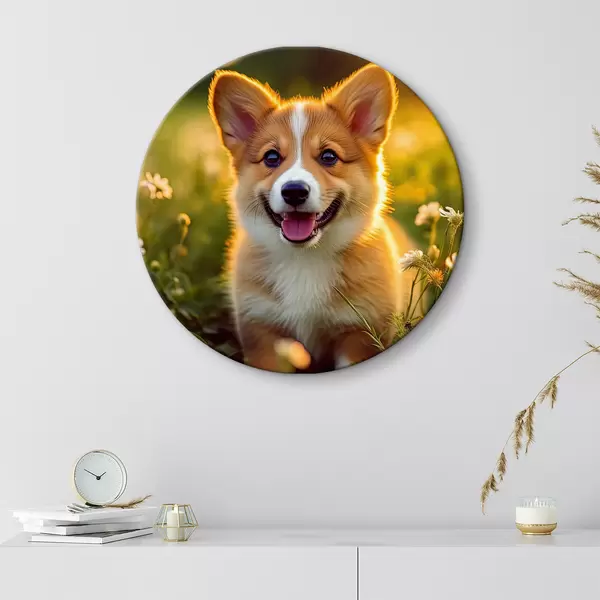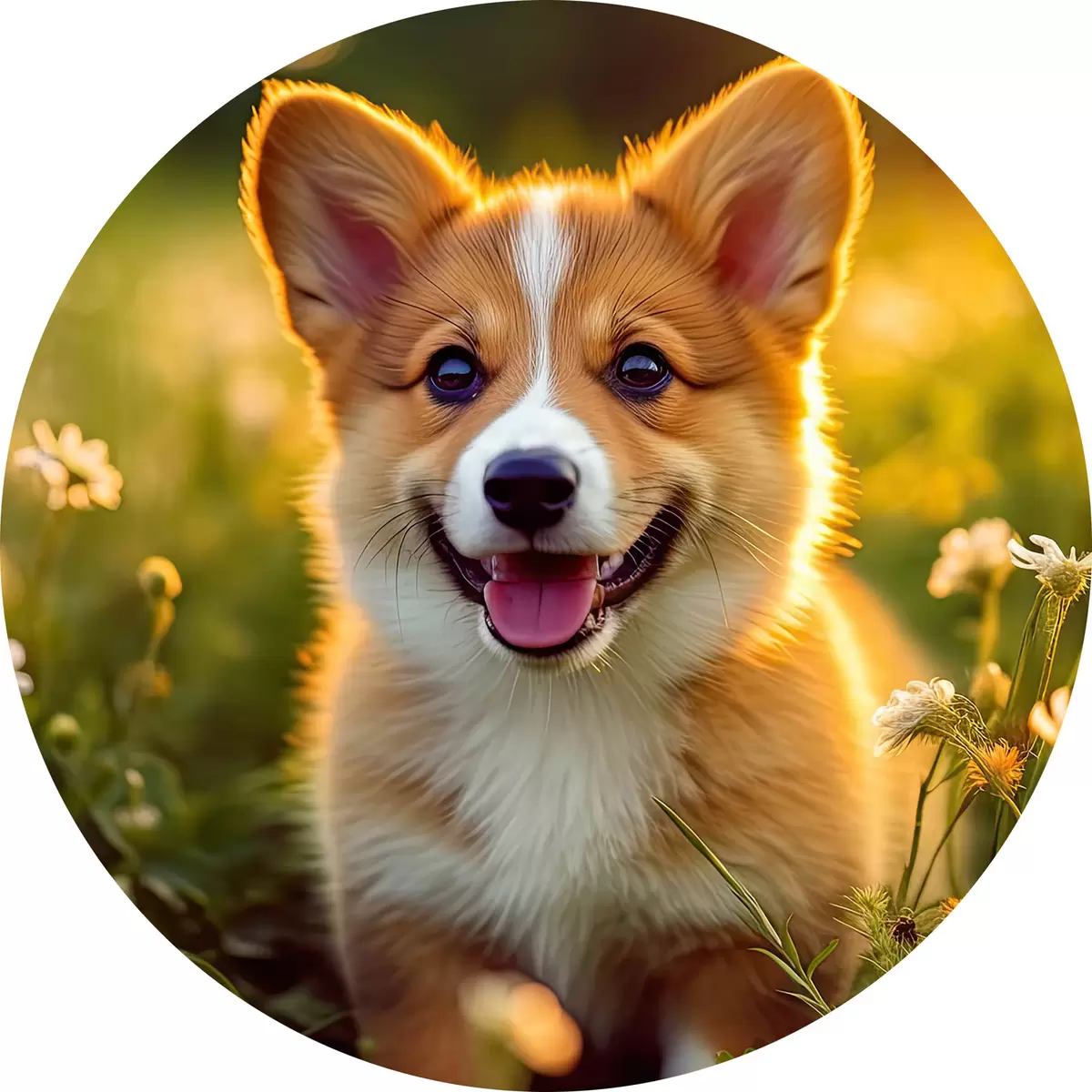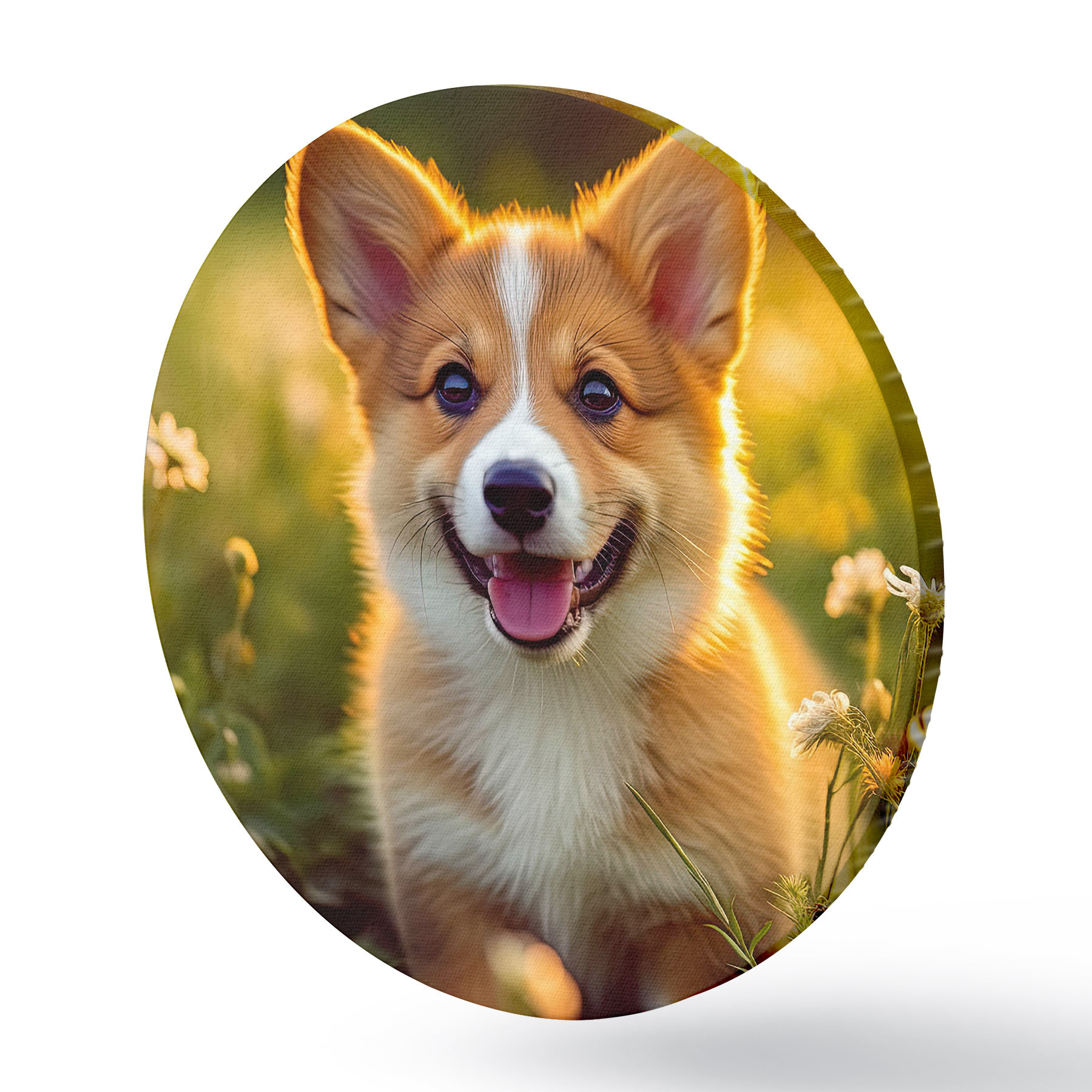 Runde Gemälde Corgi-Welpe in Wildblumen r33532