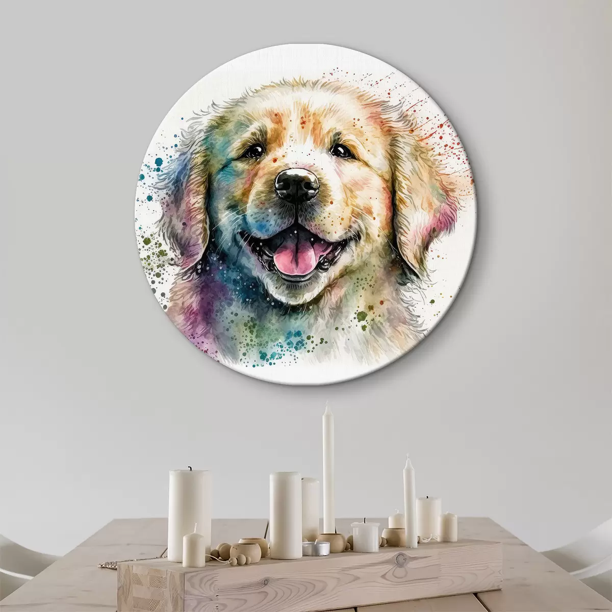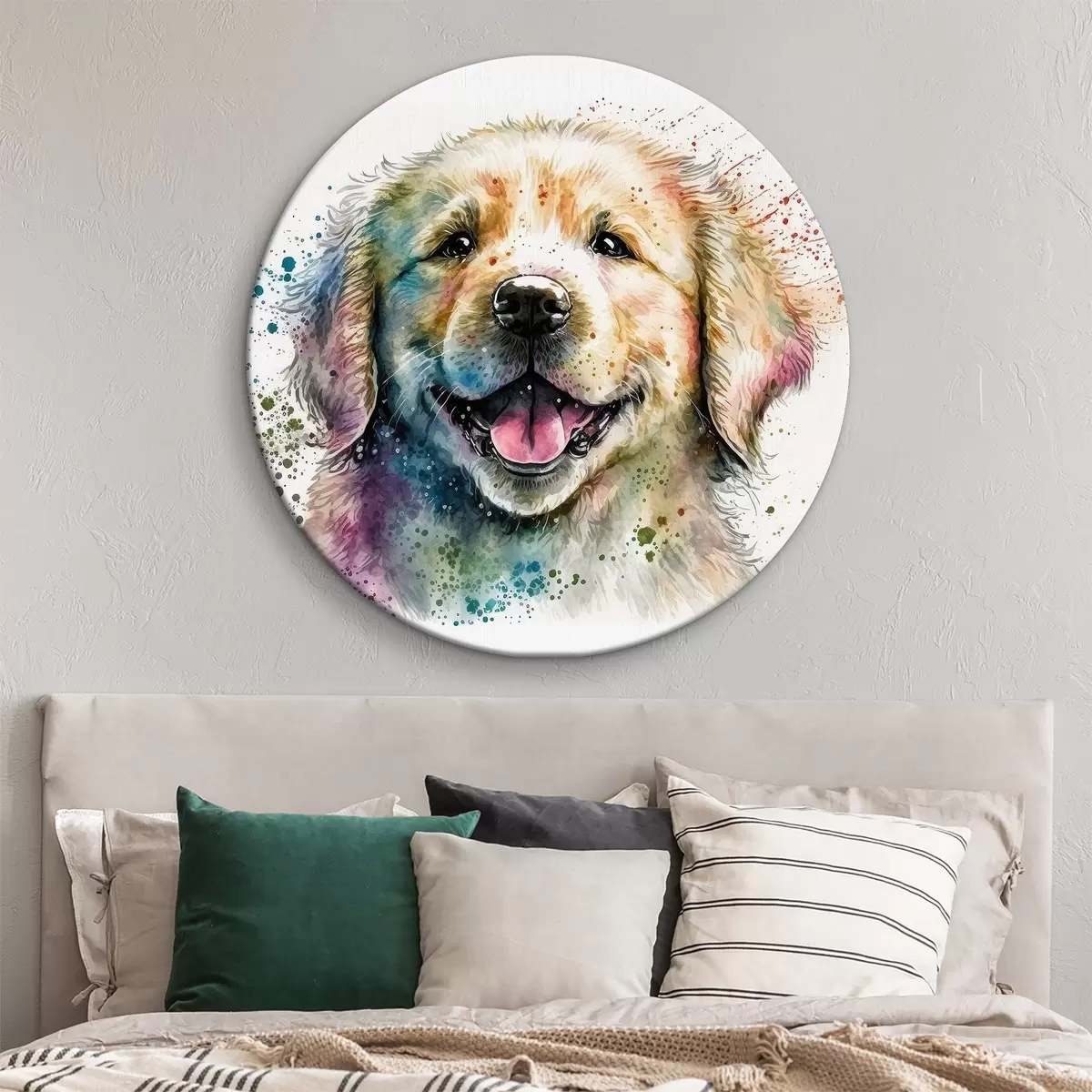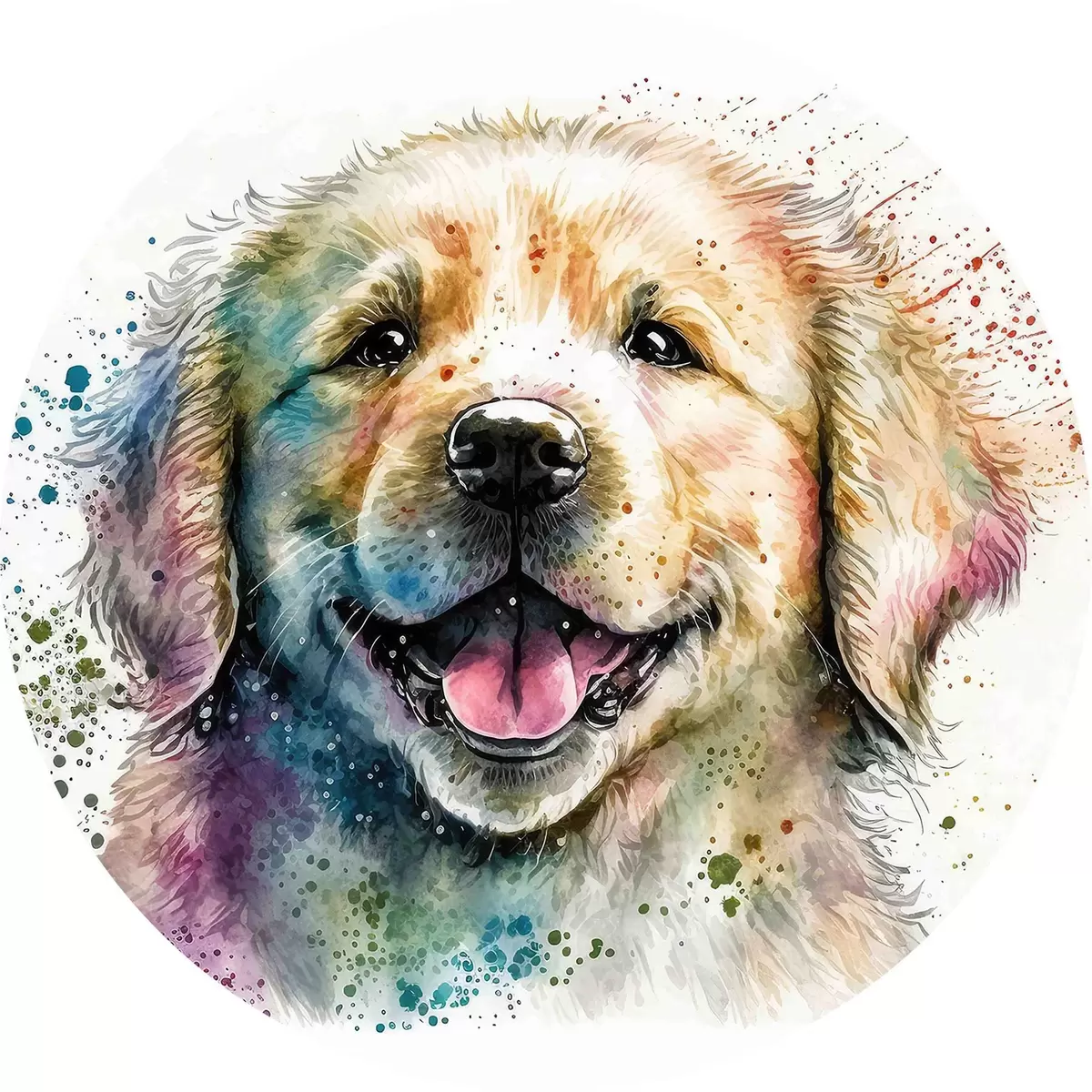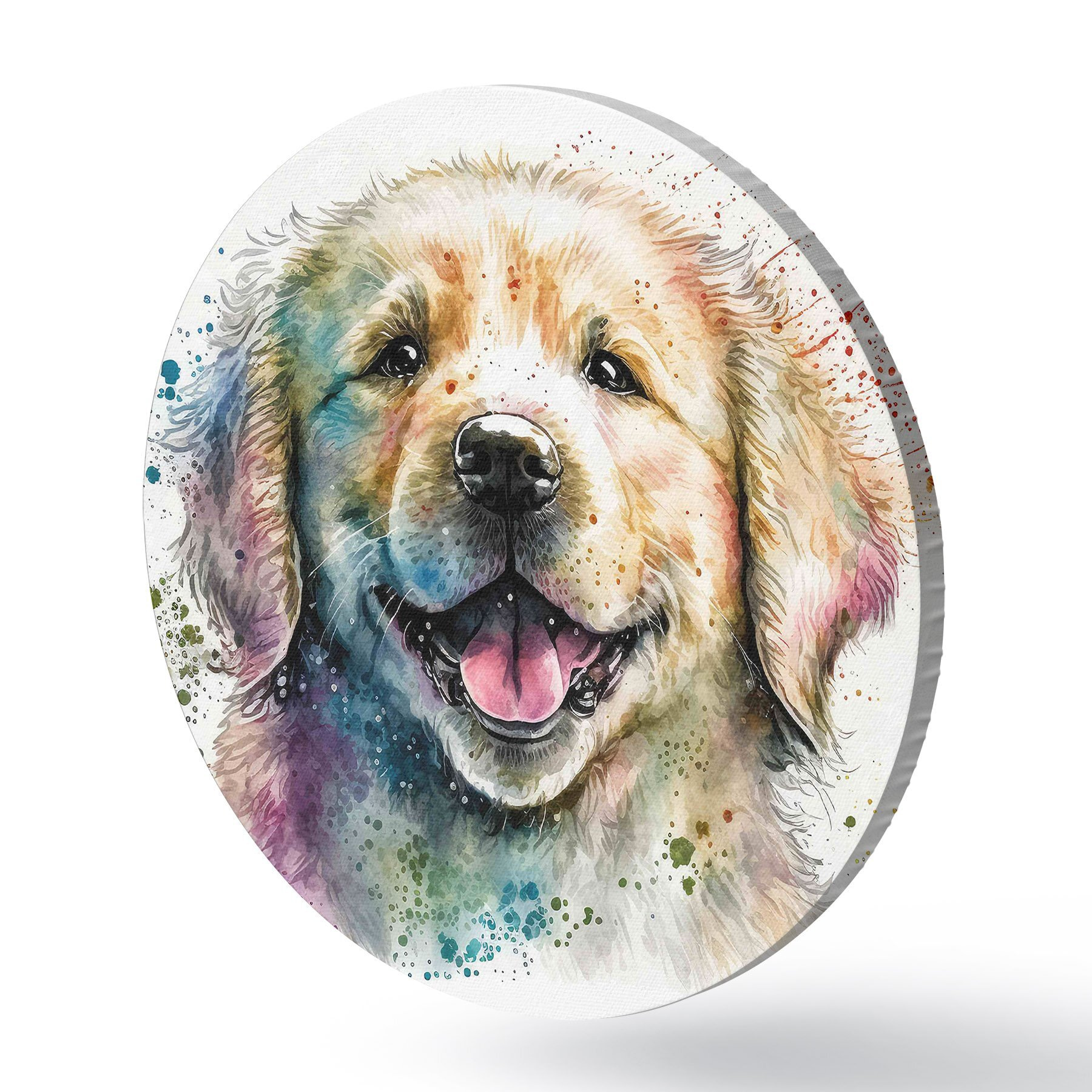 Runde Gemälde Glückliches Hündchen im Aquarellstil r33539