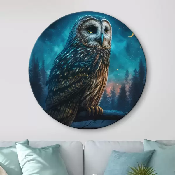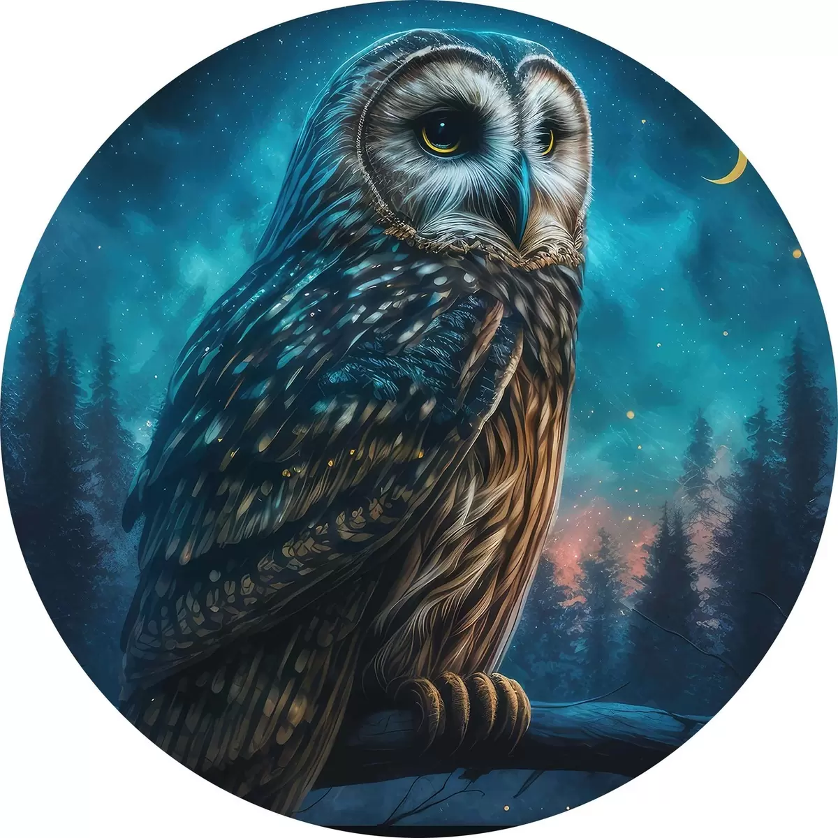 Runde Gemälde Eule im nächtlichen Wald r33544
