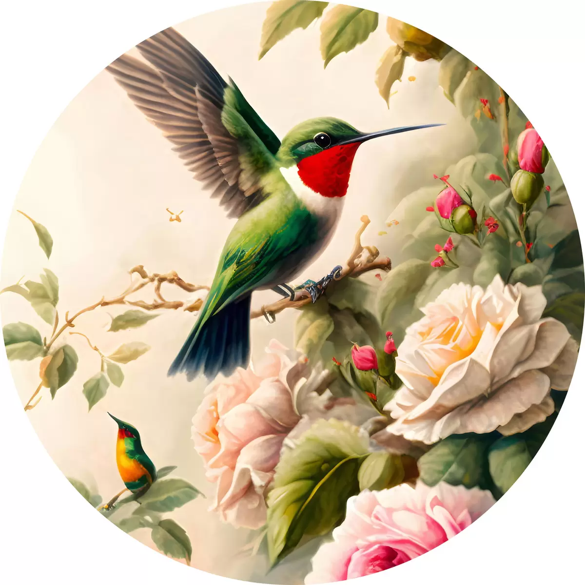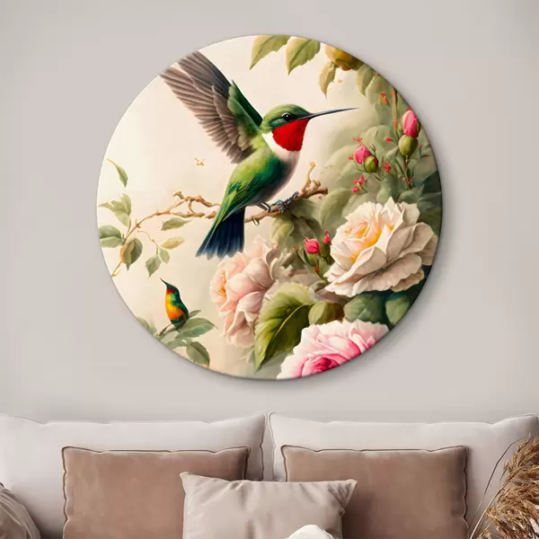 Runde Gemälde Blumen, Vögel und Pflanzen r33561