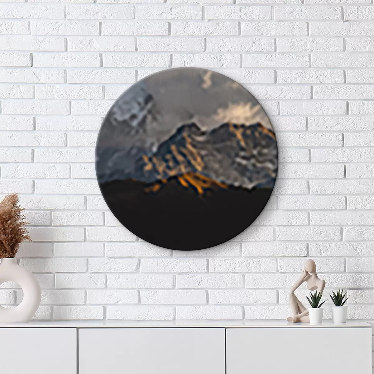 Runde Gemälde Wolken über einem Berg im Himalaya r33610