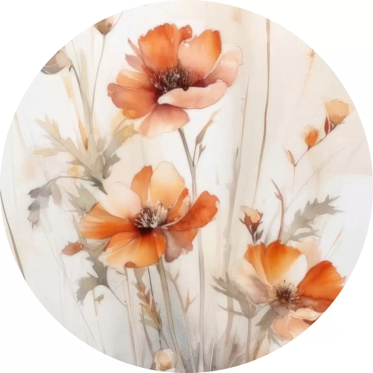 Runde Gemälde Blume, Pflanze und Zweig r33649
