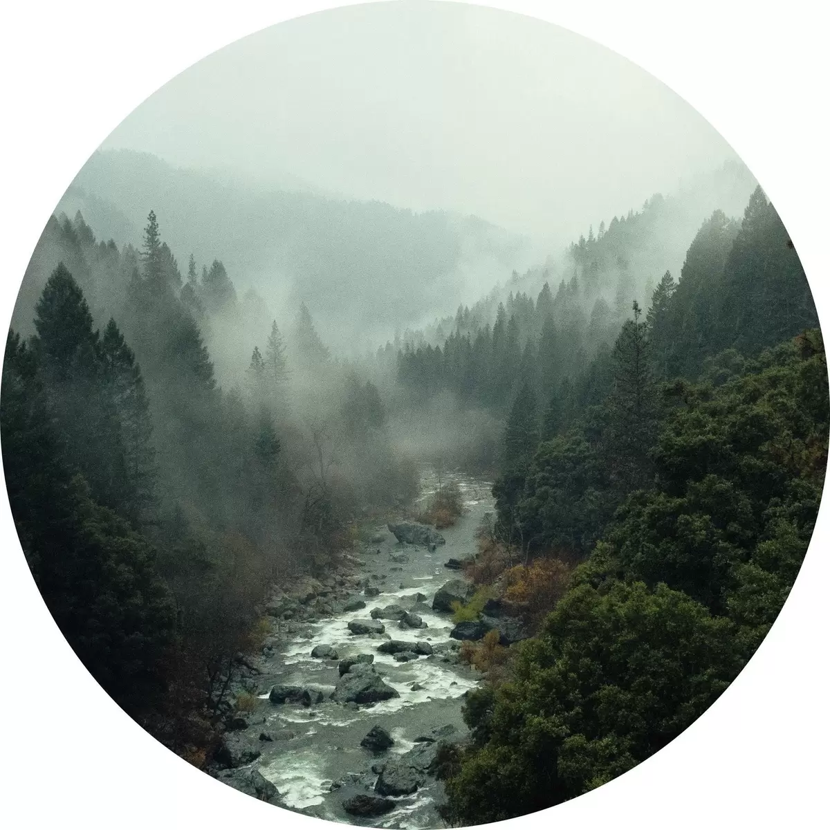 Runde Gemälde Wasser, Berge und Himmel r33760