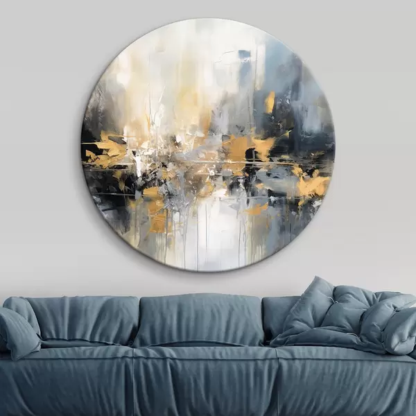 Runde Gemälde Abstrakte Malerei in blauen und weißen Farbtönen r34183