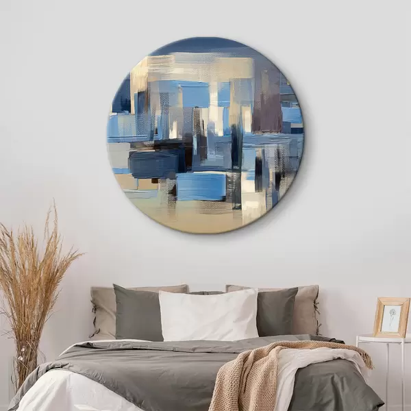 Runde Gemälde Wasser, Wolkenkratzer und Farbe r34186