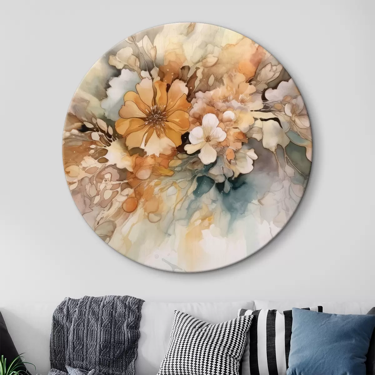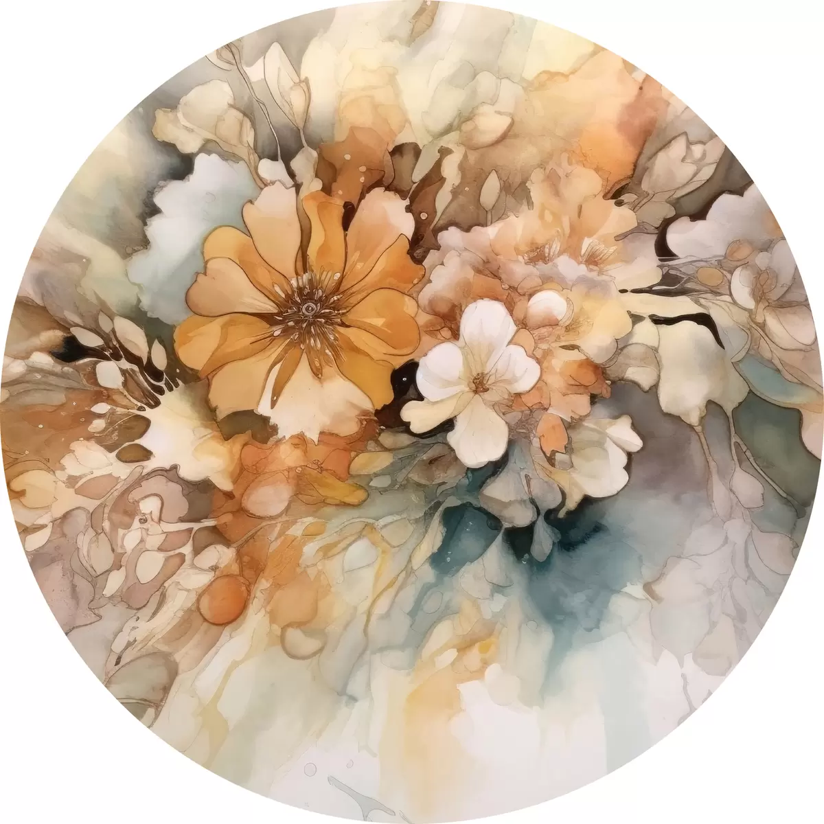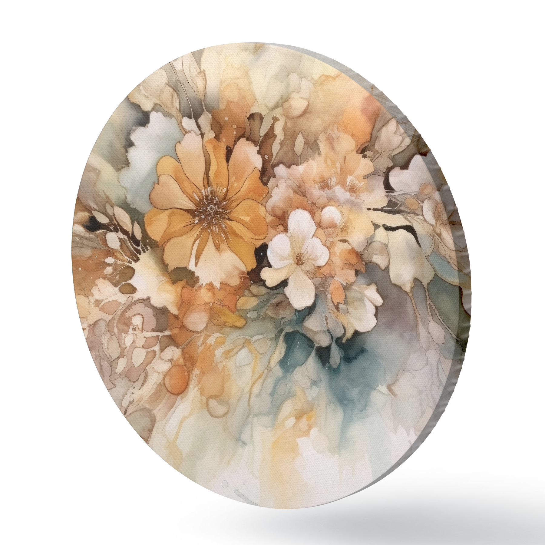 Runde Gemälde Orangefarbene Aquarellblumen r34202