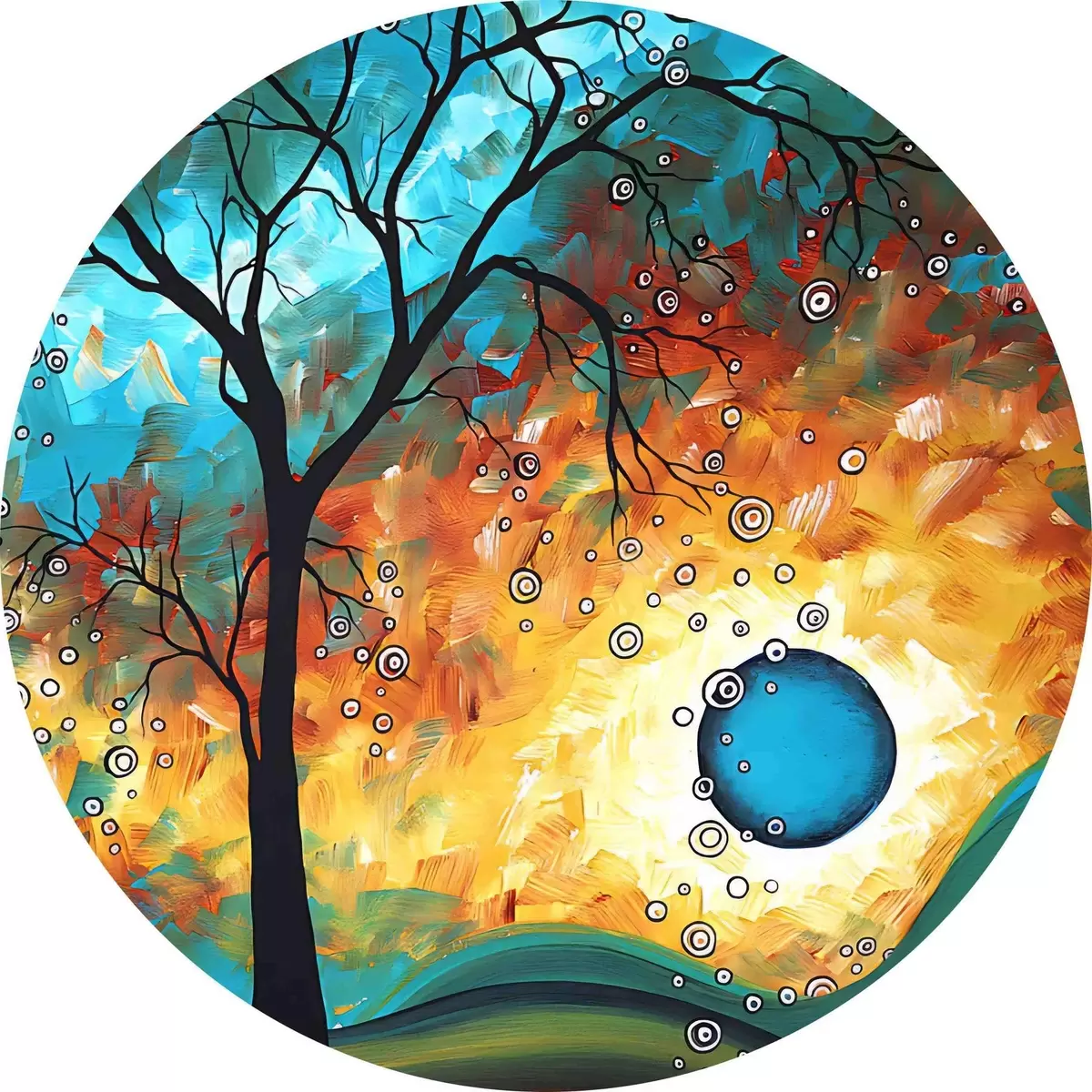 Runde Gemälde Baum mit Regenbogenmuster r34434