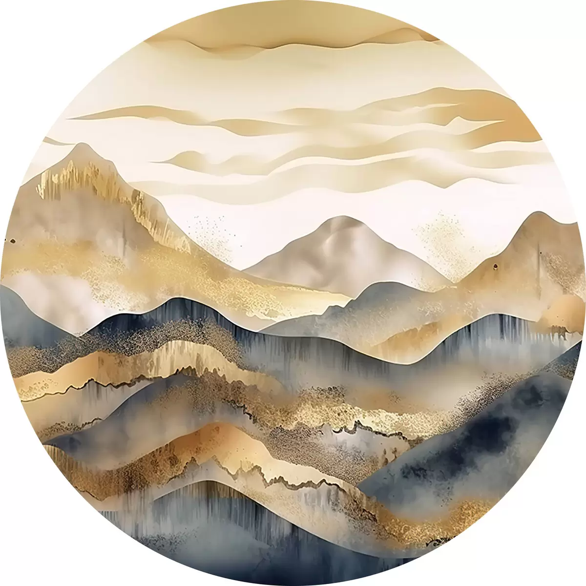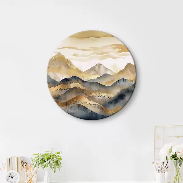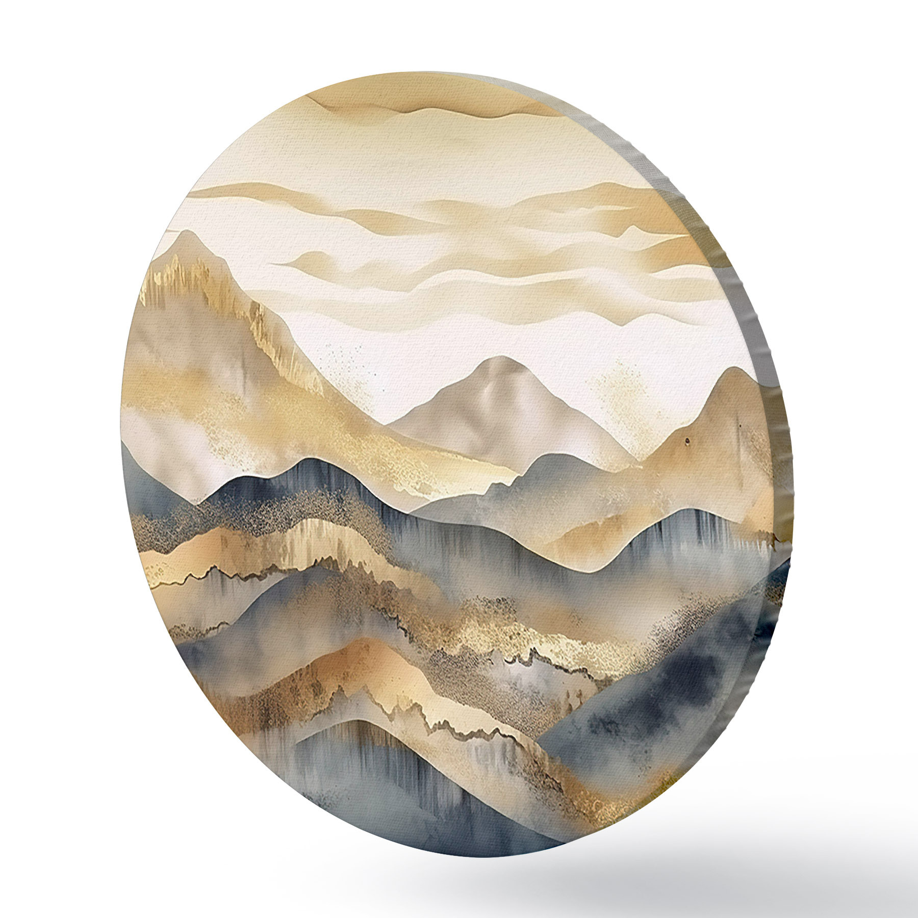 Runde Gemälde Abstrakter Hintergrund mit Bergen in Beige und Grau mit Elementen auf weißem Hintergrund r34462
