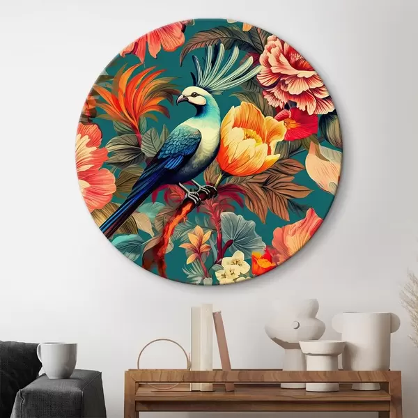 Runde Gemälde Tropisch ästhetisches Muster mit Aras r34489
