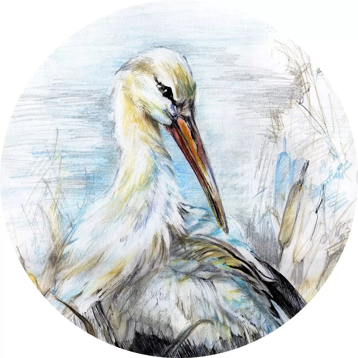 Runde Gemälde Vogel, Schnabel und Malerei r34607