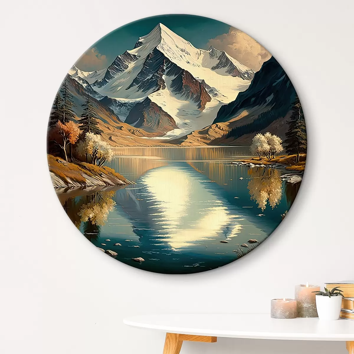 Runde Gemälde Berg-Ölgemälde mit Bäumen und Schnee r34631