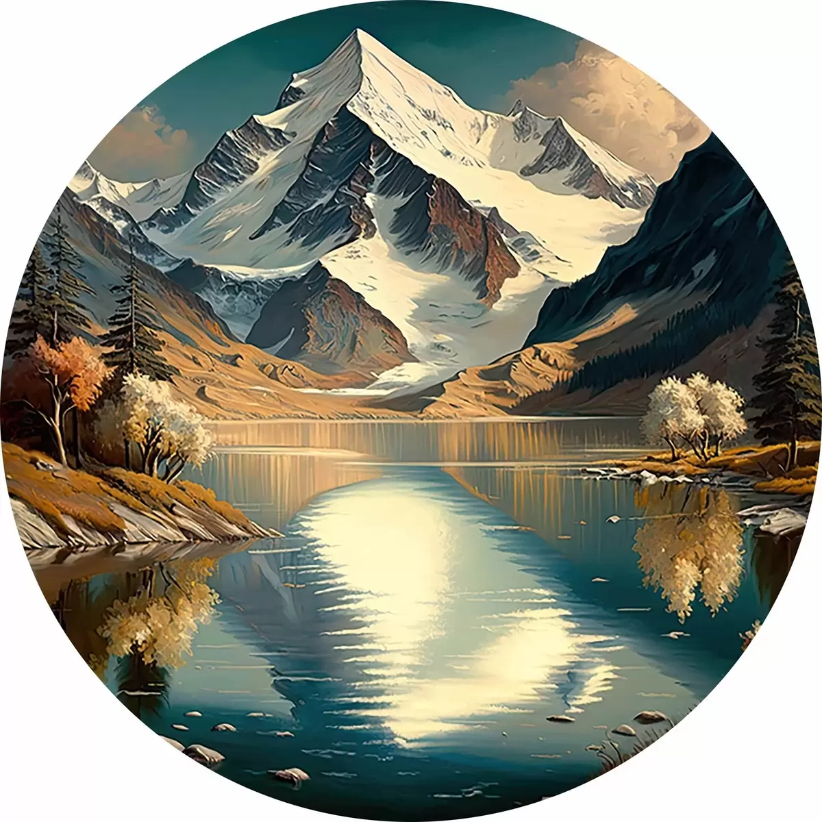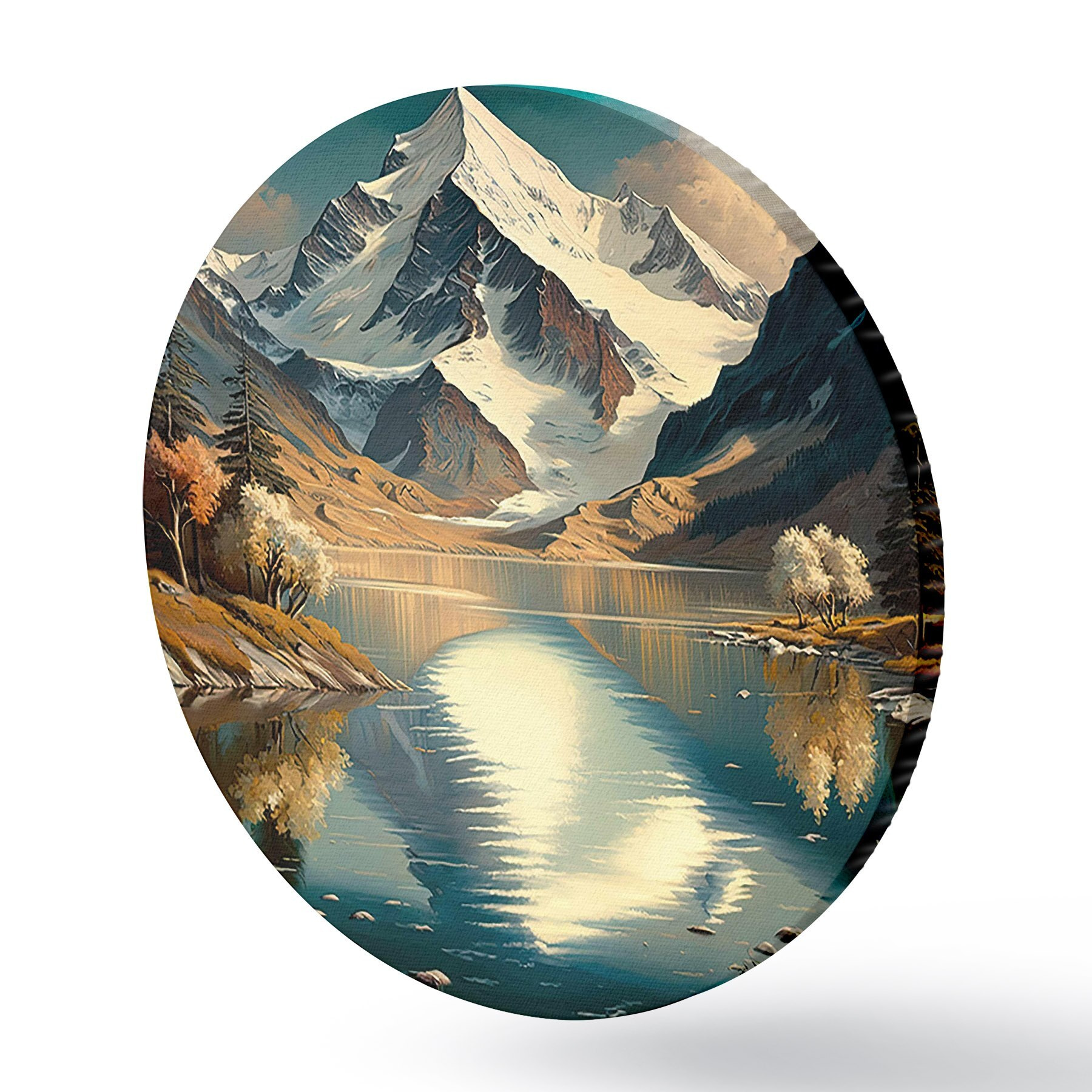 Runde Gemälde Berg-Ölgemälde mit Bäumen und Schnee r34631