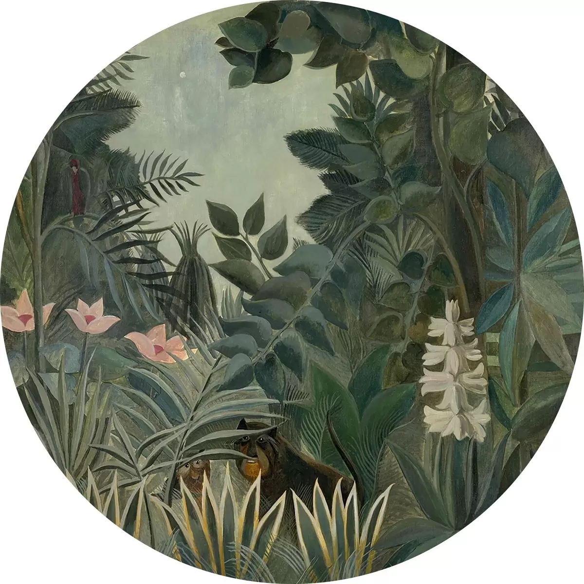 Runde Gemälde Äquatorialer Dschungel, Henri Rousseau, 1909 r34840