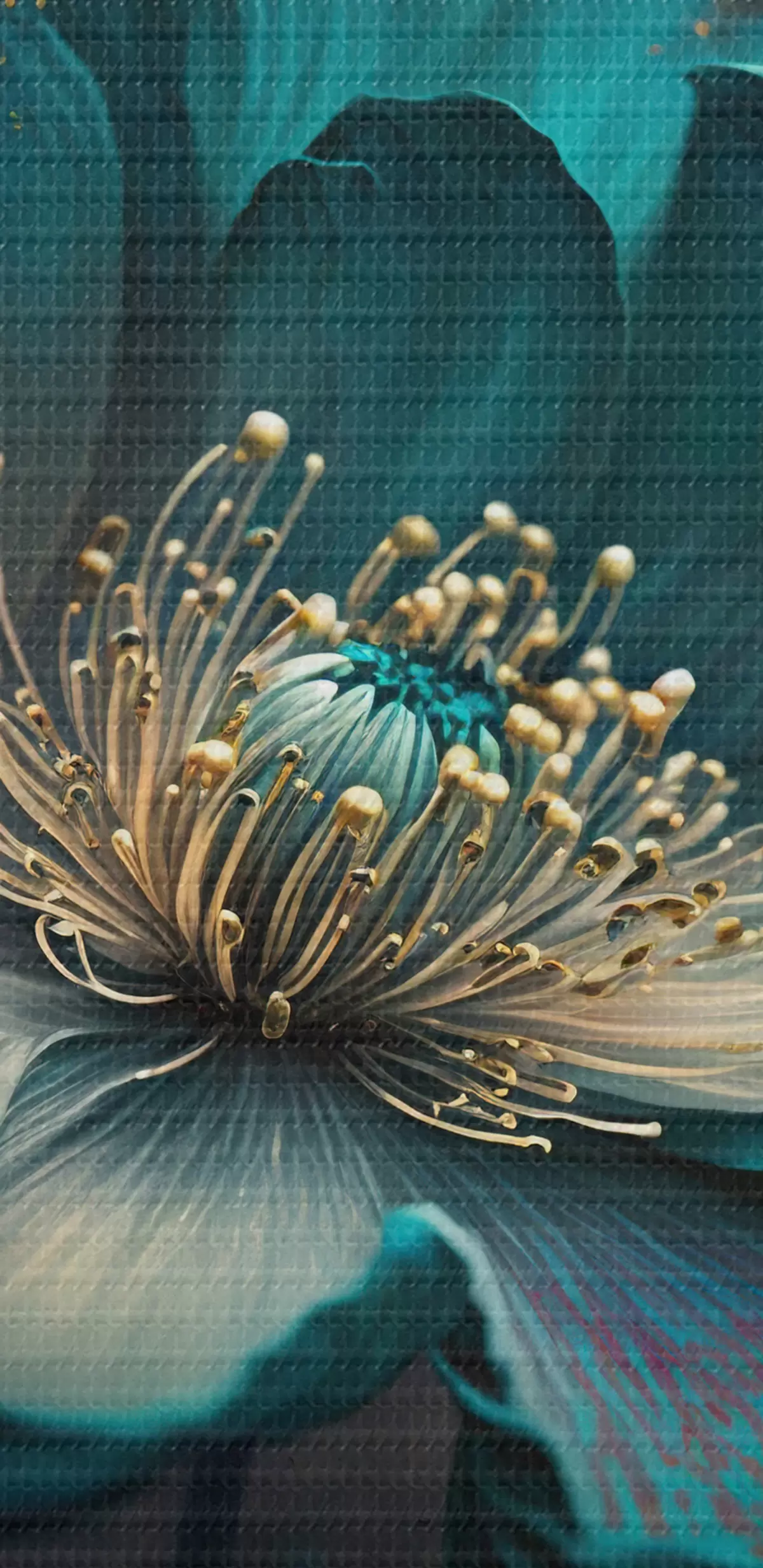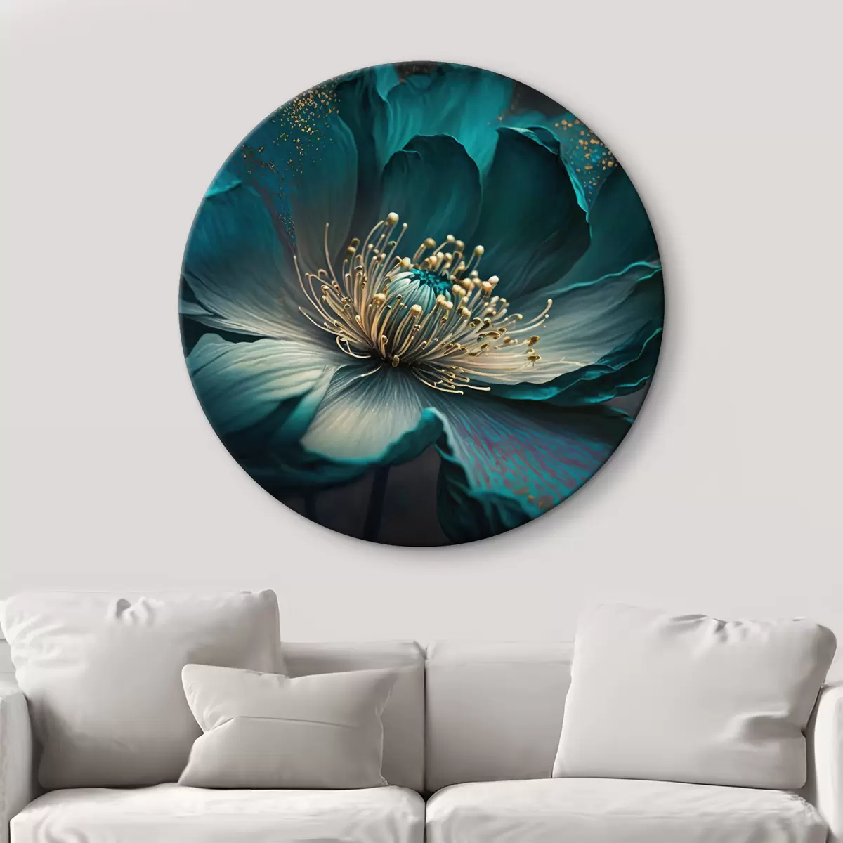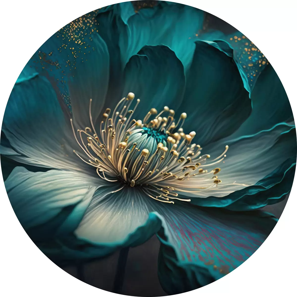 Runde Gemälde Türkisfarbene Blume Nahaufnahme r34854