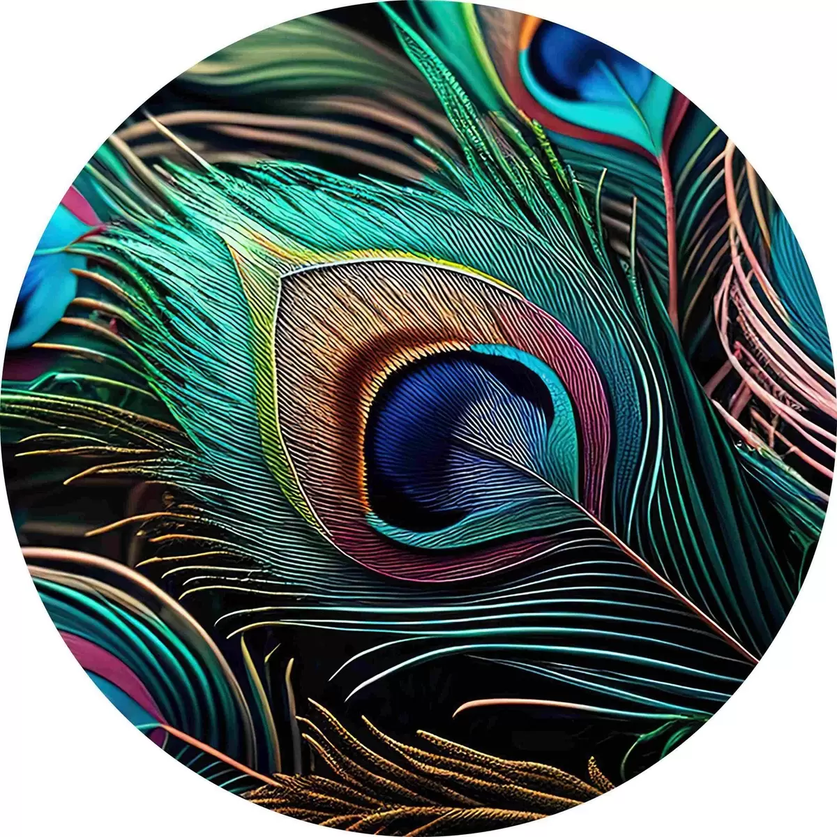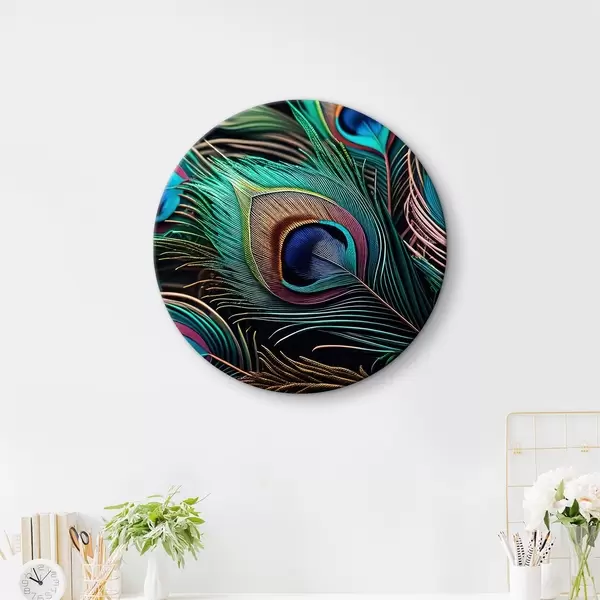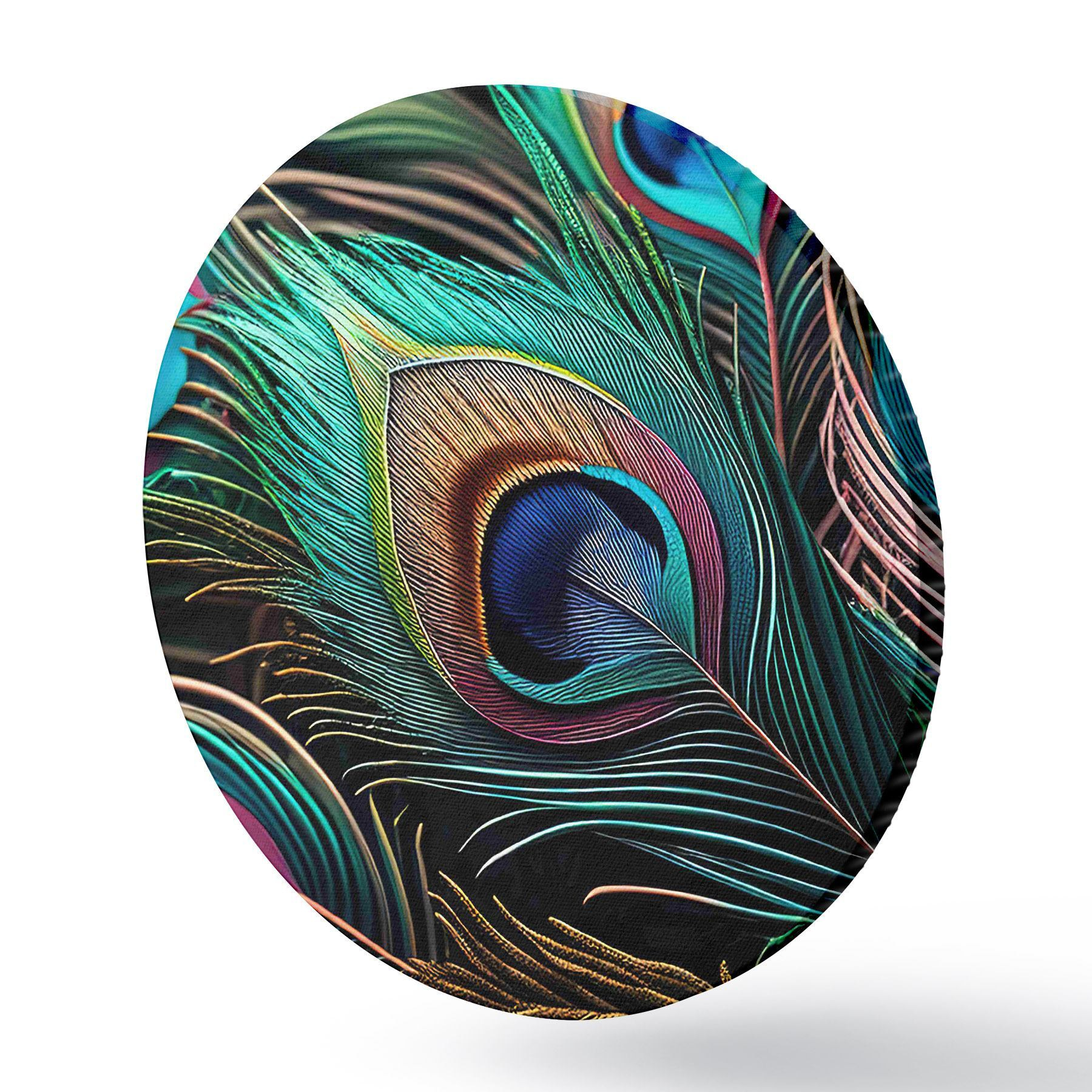 Runde Gemälde Leuchtende Pfauenfedern r34871