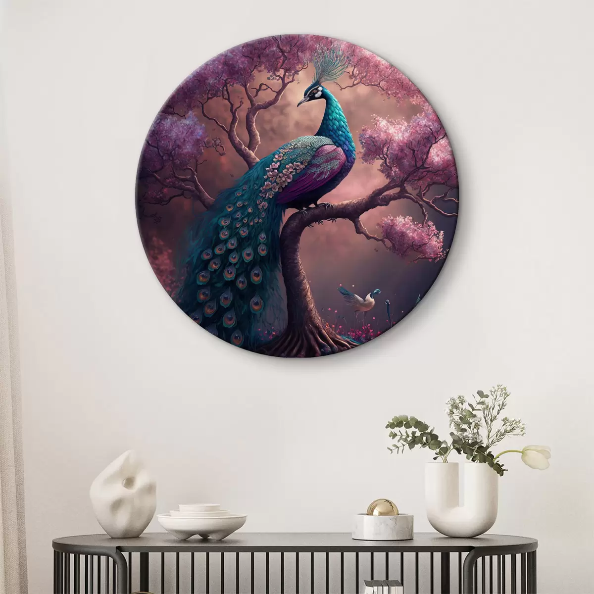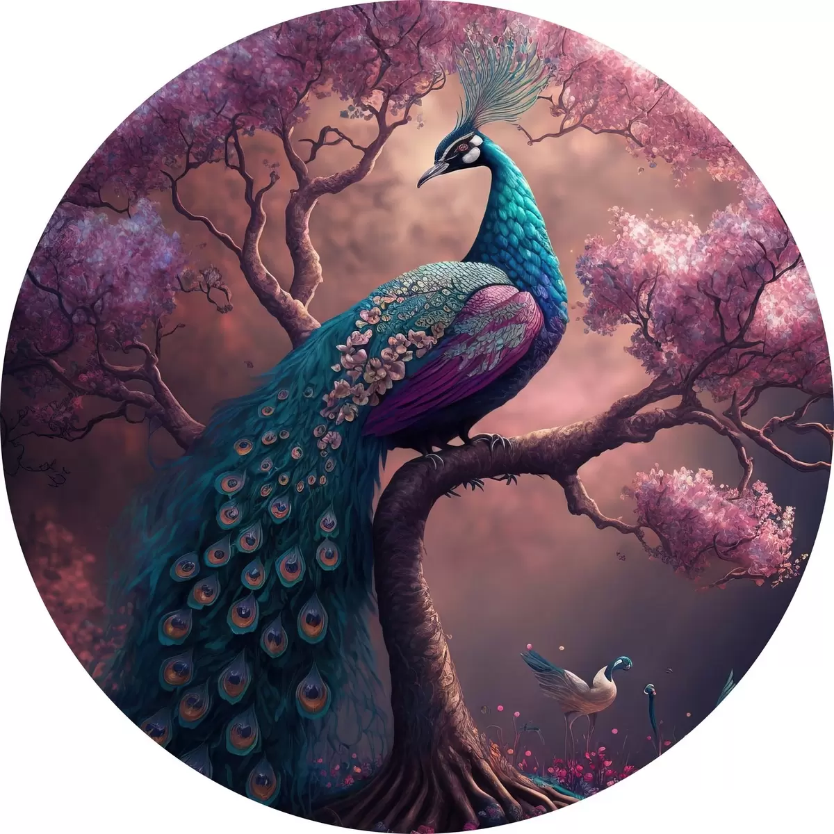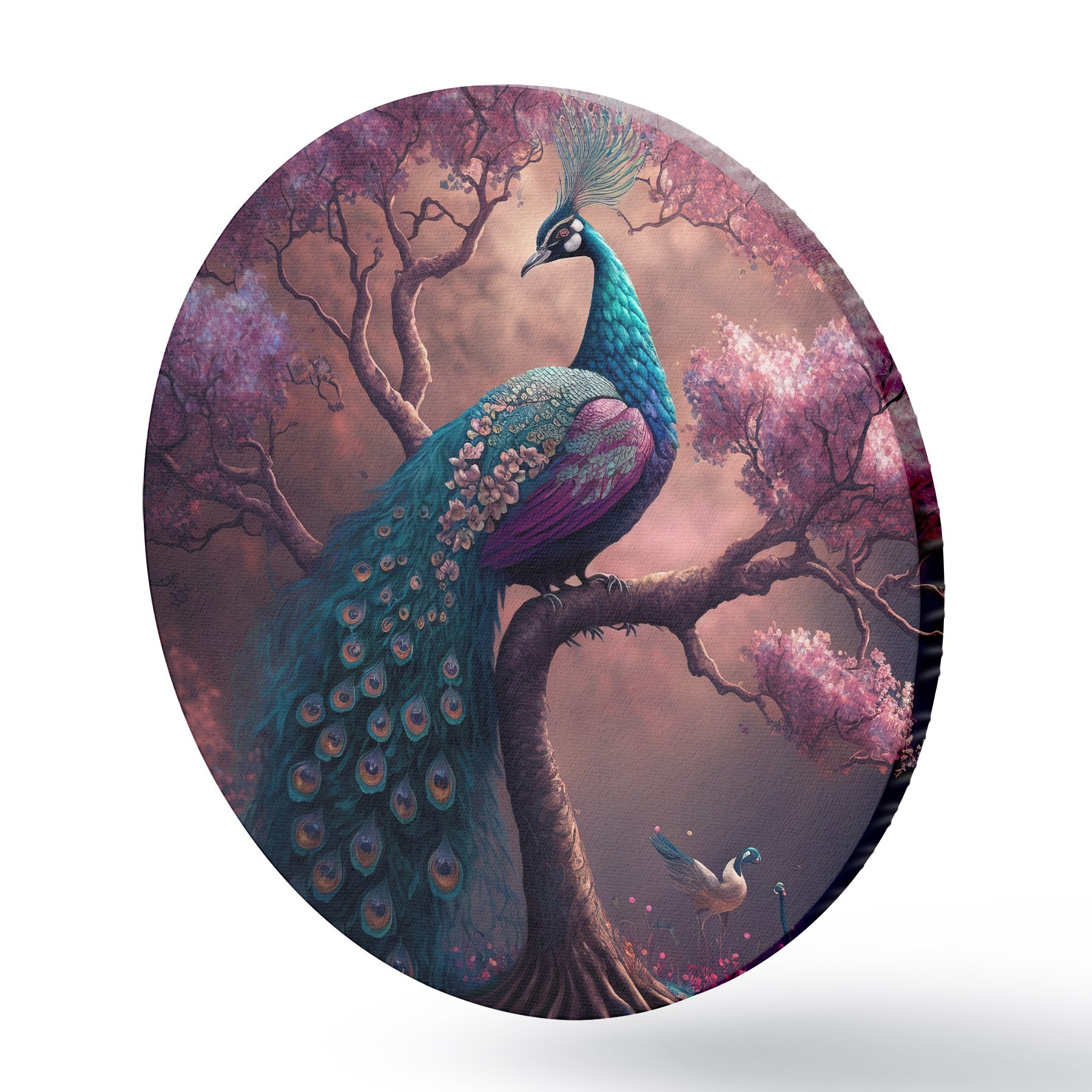 Runde Gemälde Vogel, Natur und Lila r34875